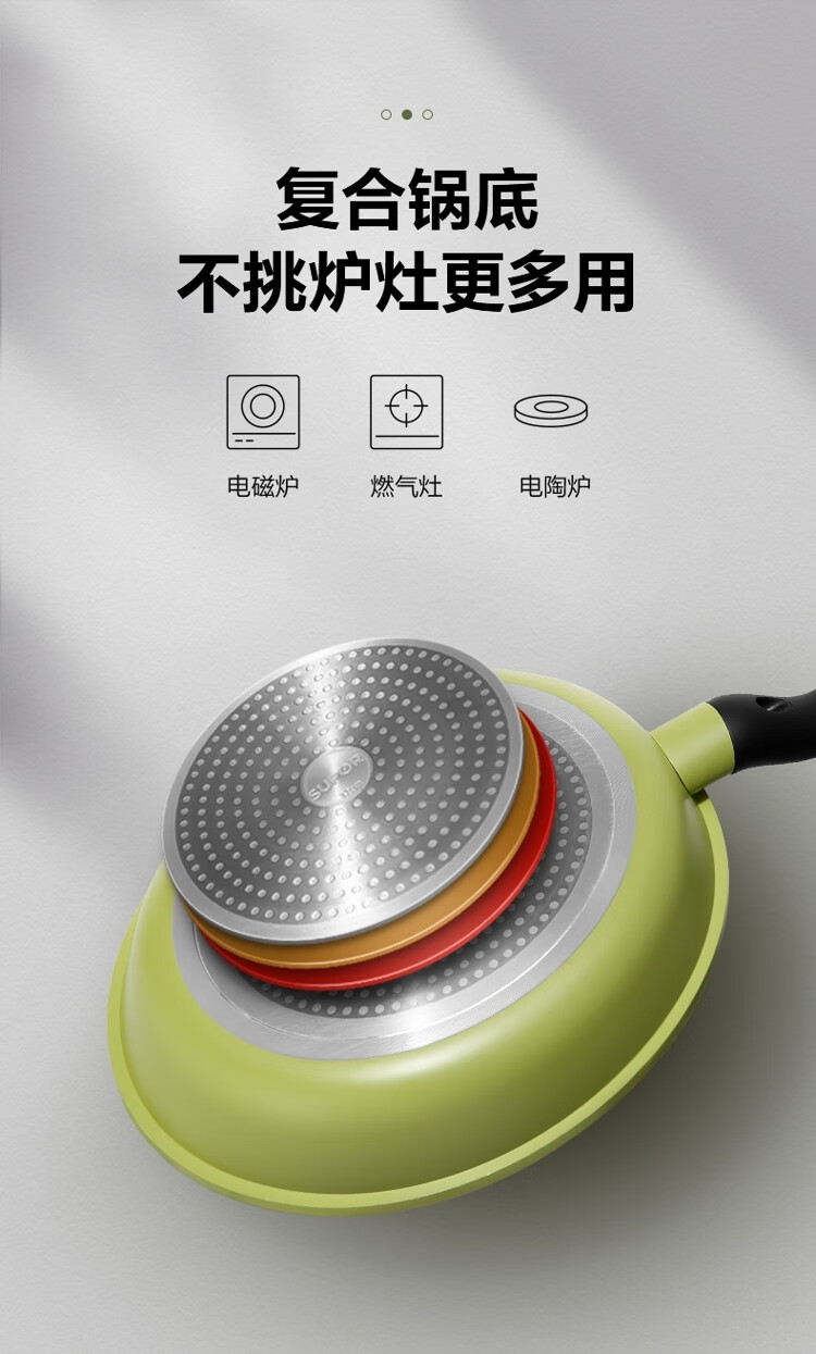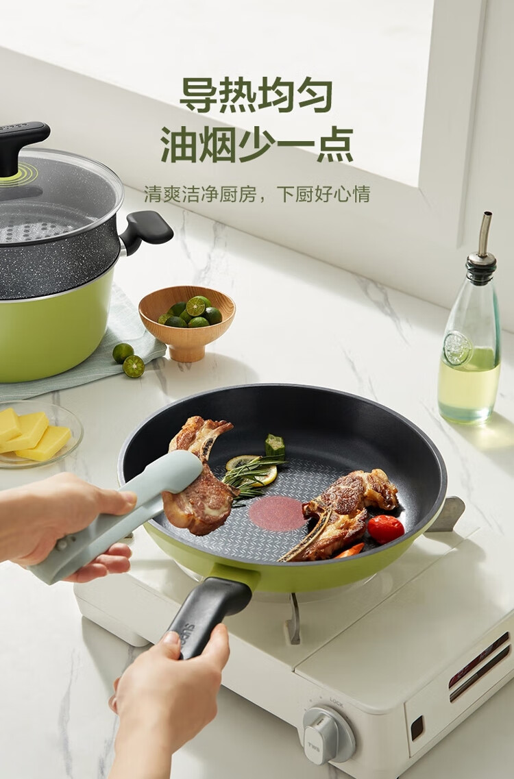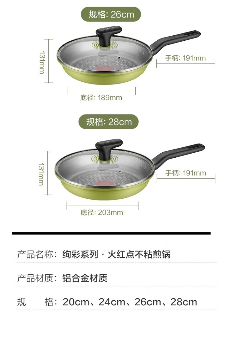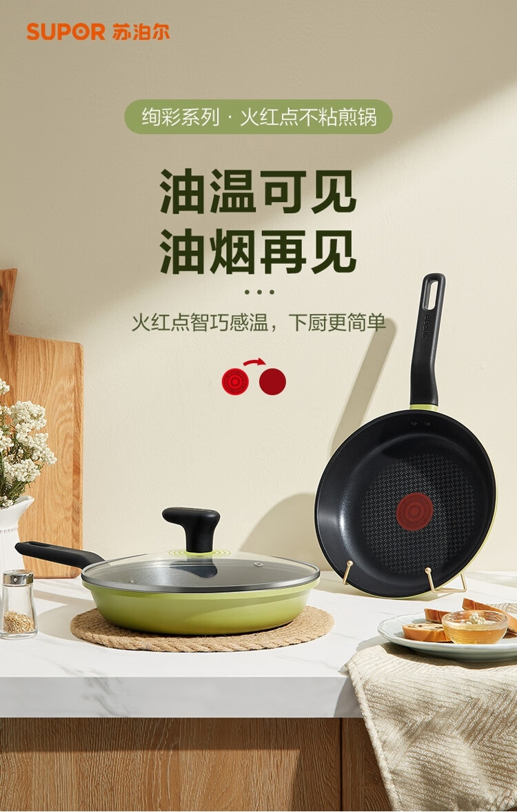 苏泊尔(SUPOR) 火红点不粘煎锅.绚彩系列 EJ26TAN01 26cm带盖 柠绿色(单位:个)