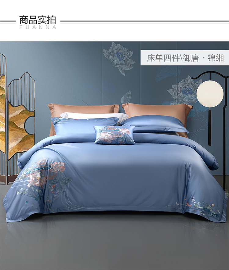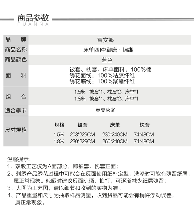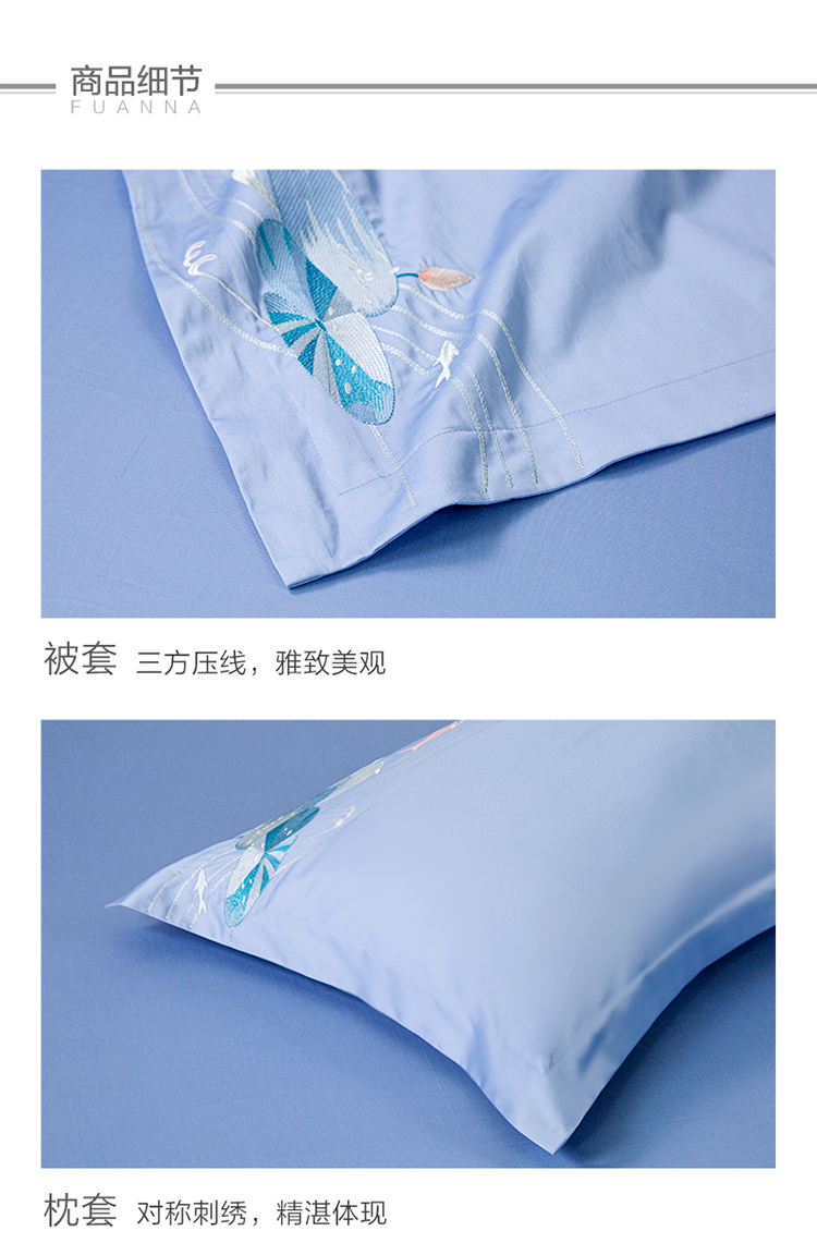 富安娜 四件套纯棉 8110053874165 230*229cm 蓝色(单位:套)