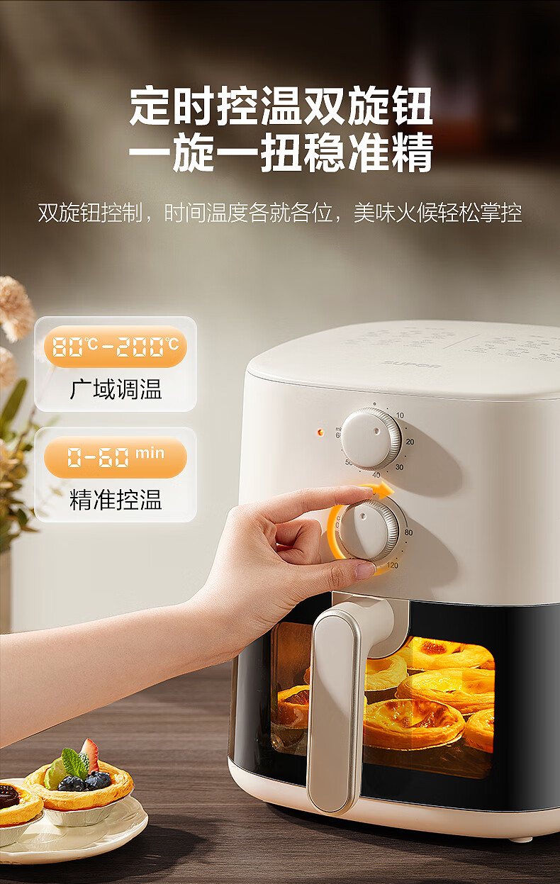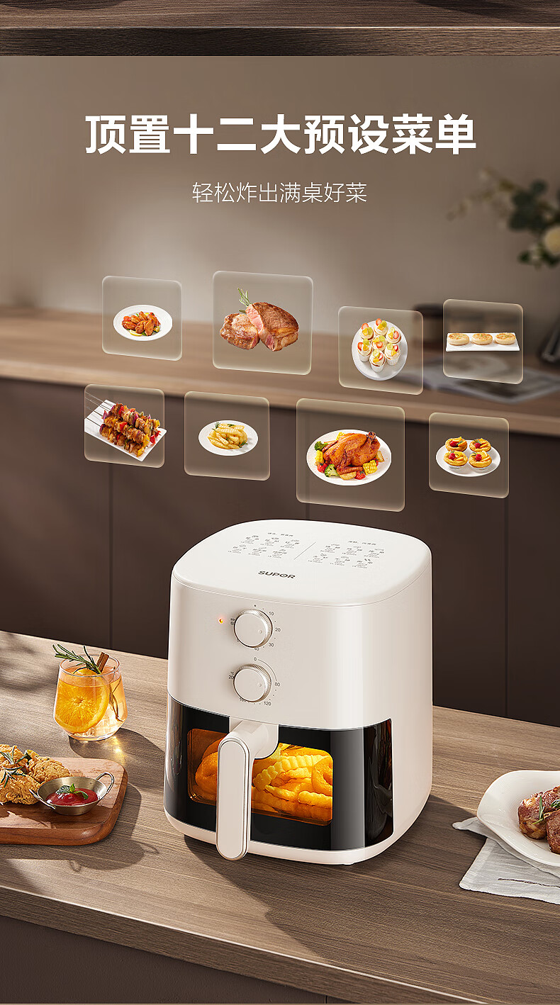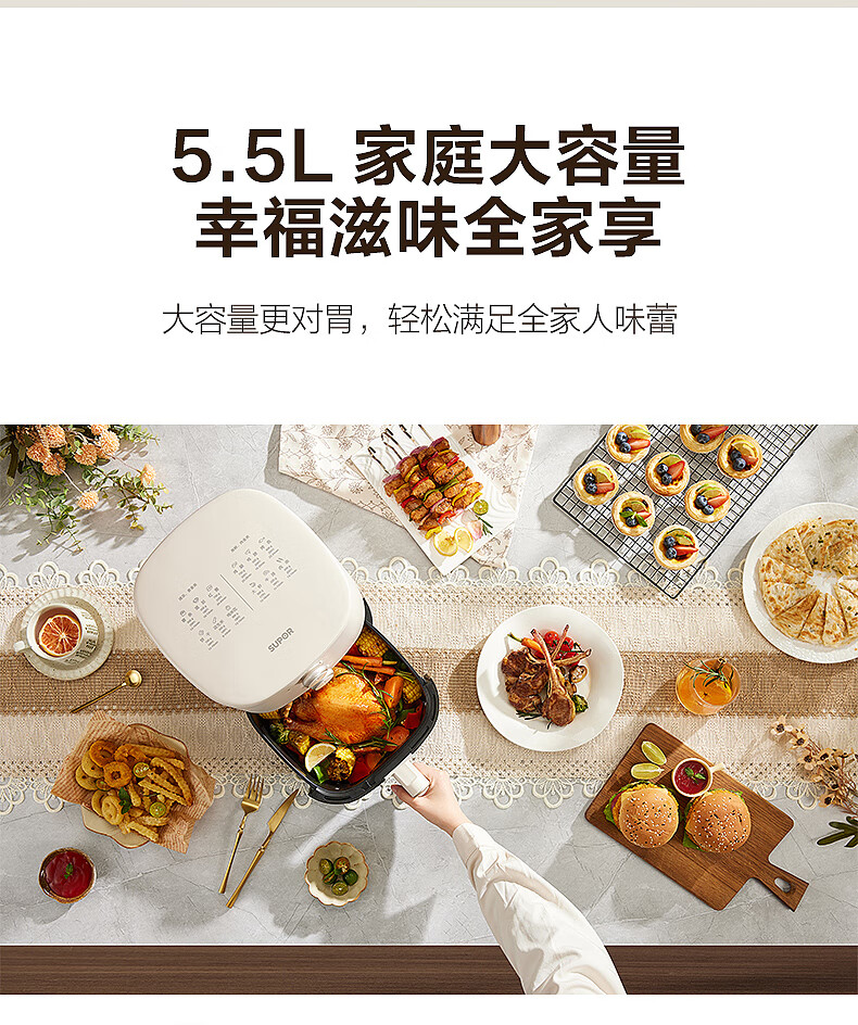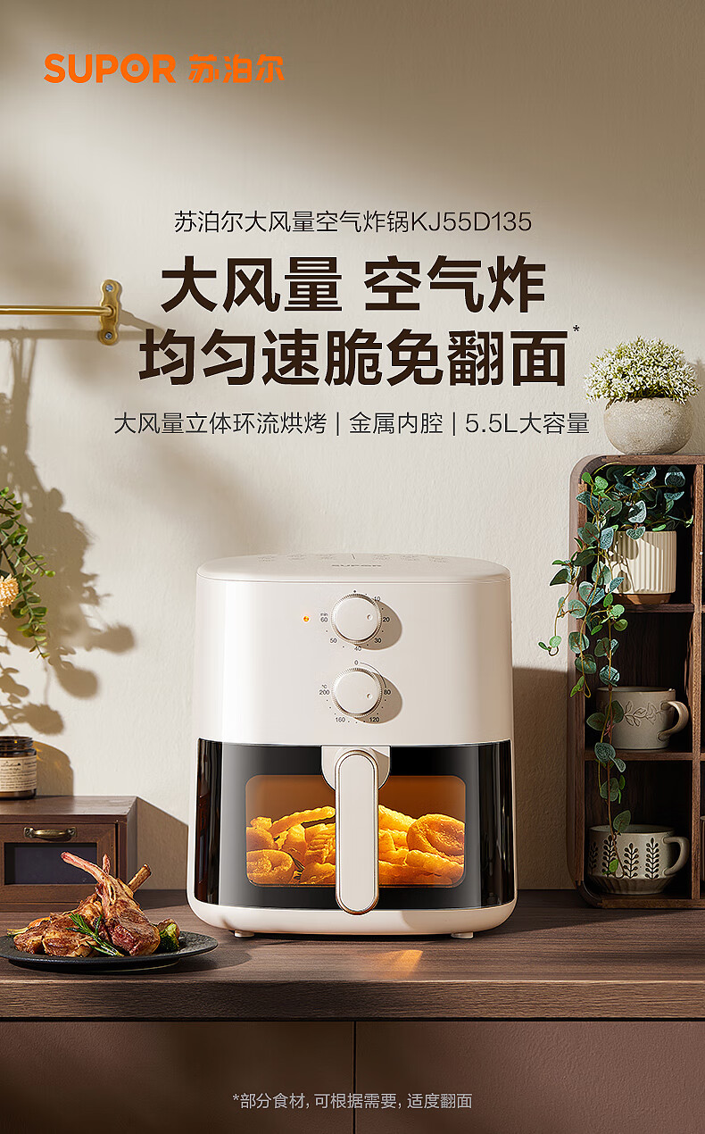 苏泊尔(SUPOR) 空气炸锅家用多功能烘烤6.1英寸高清可视窗 KJ55D135 5.5L 米白色(单位:台)