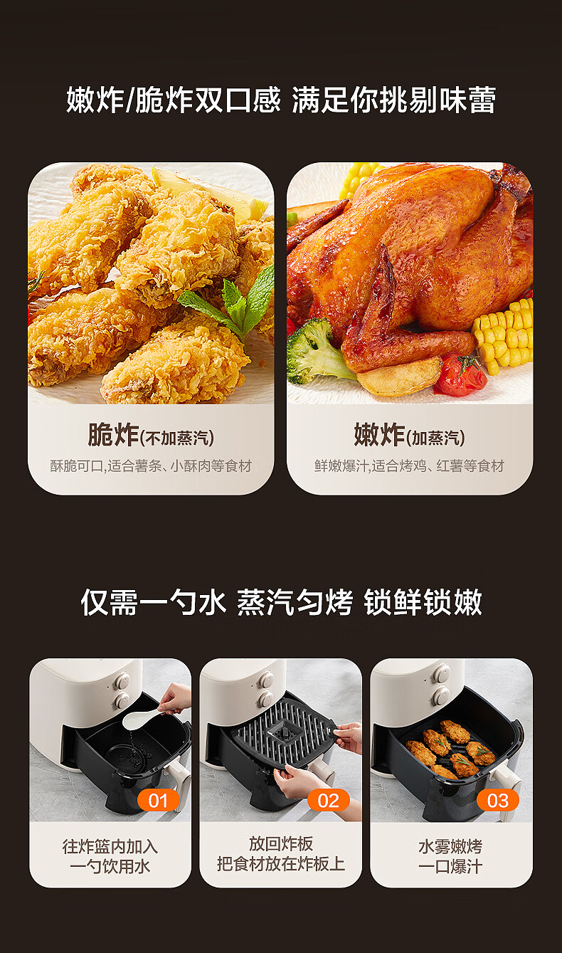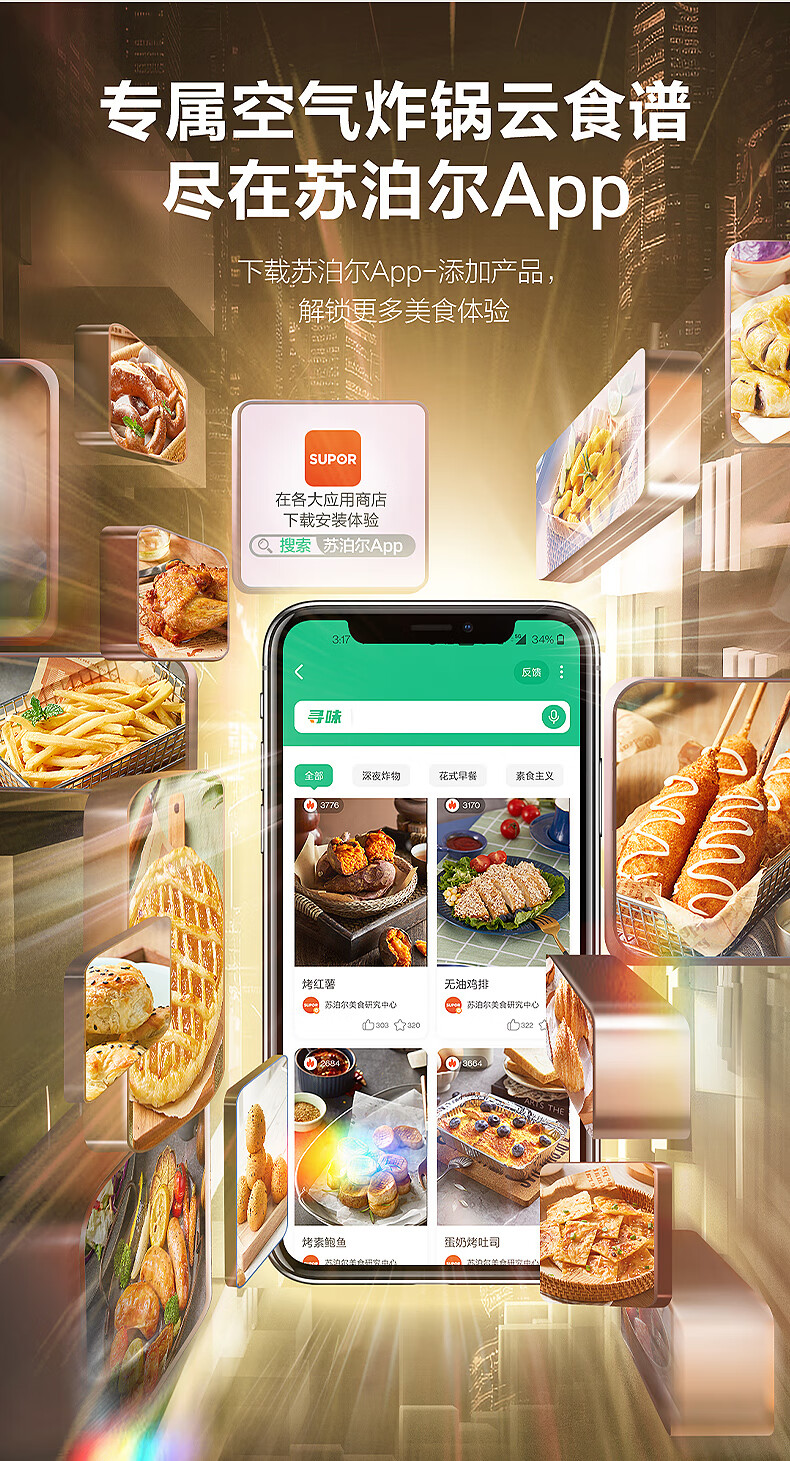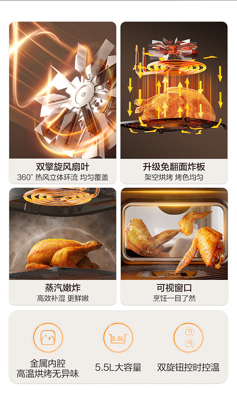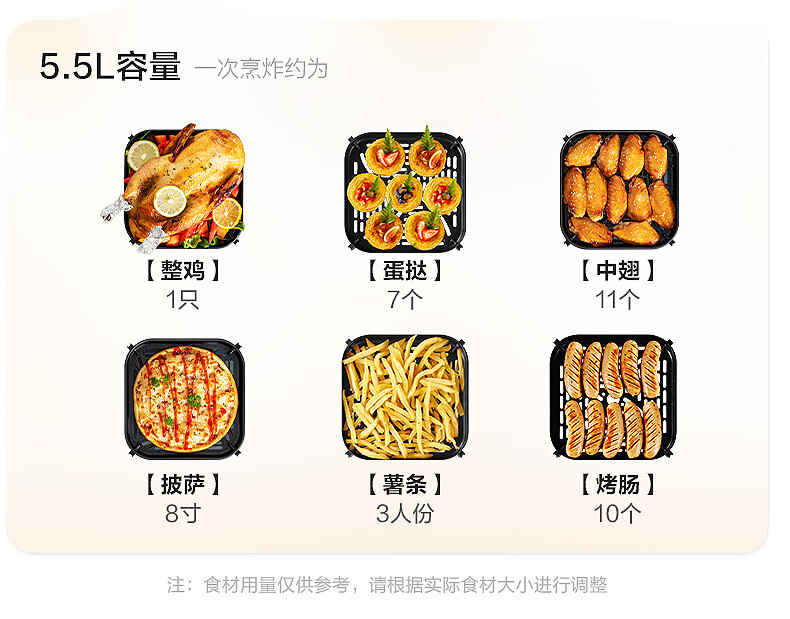 苏泊尔(SUPOR) 空气炸锅家用多功能烘烤6.1英寸高清可视窗 KJ55D135 5.5L 米白色(单位:台)