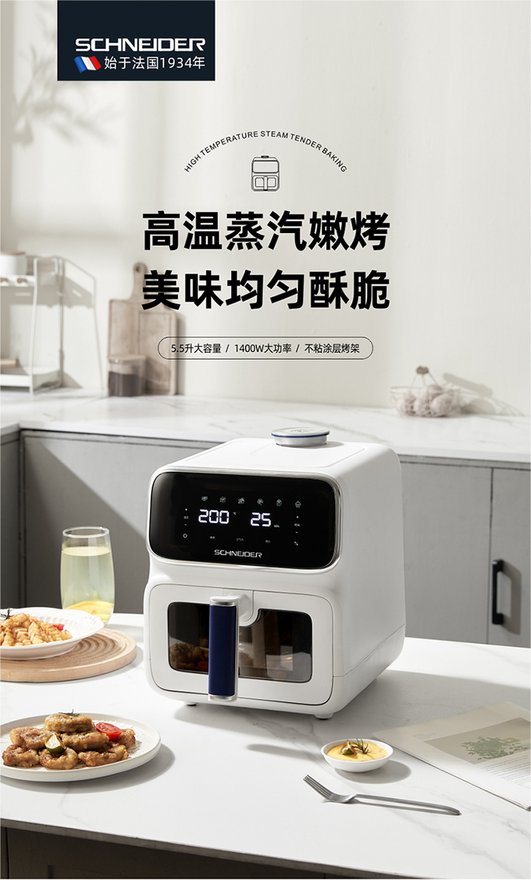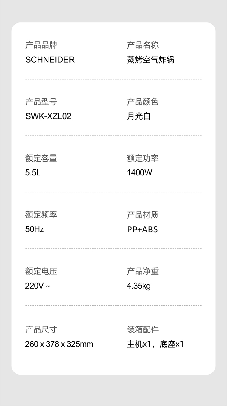 施耐德(SCHNEIDER) 蒸烤空气炸锅 SWK-XZL02 5.5L 月光白(单位:台)