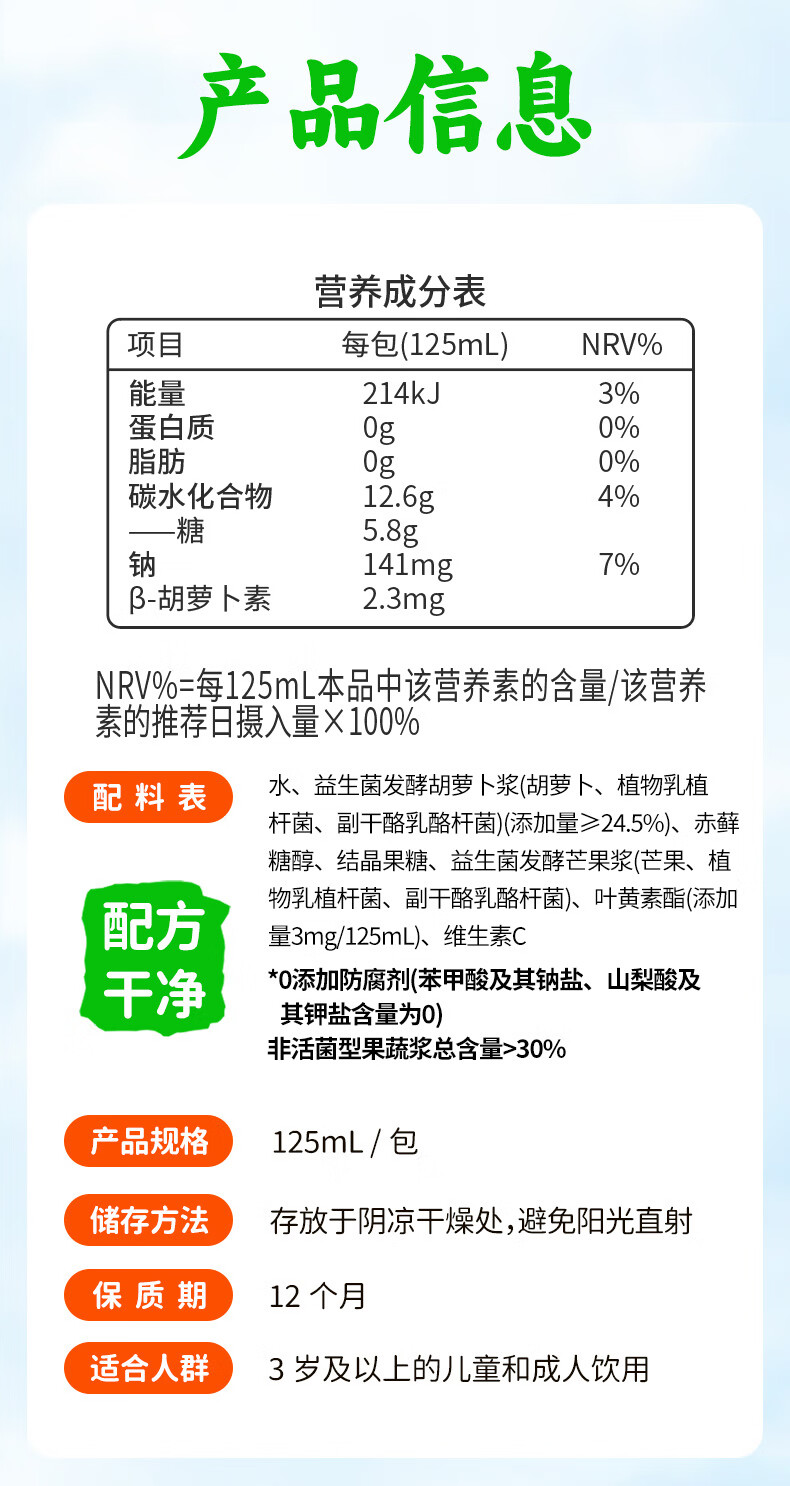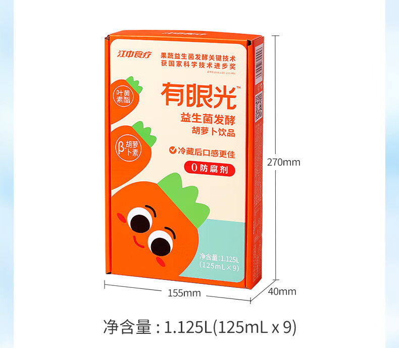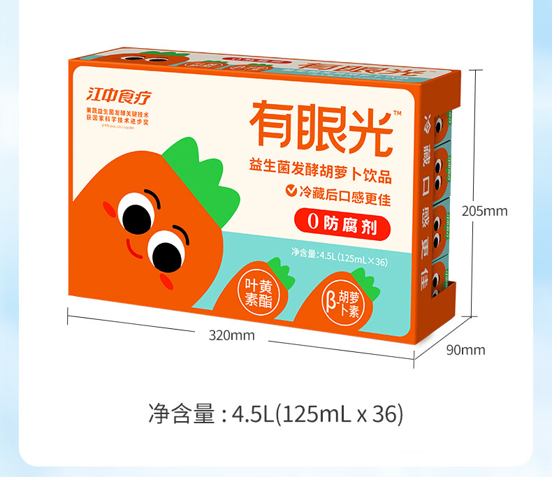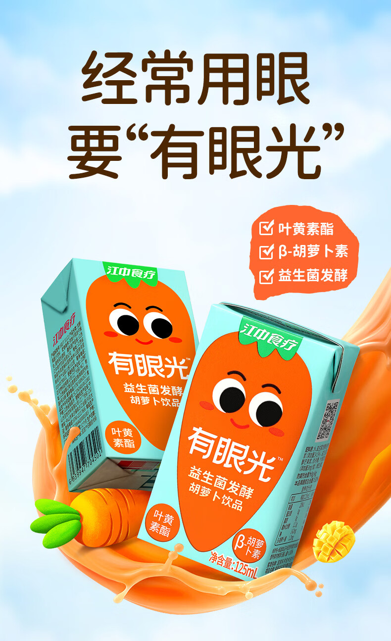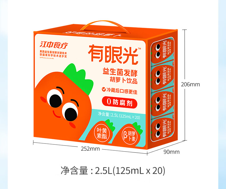 江中食疗 果汁 有眼光益生菌发酵胡萝卜汁 125ml*4盒 橙色(单位:盒)