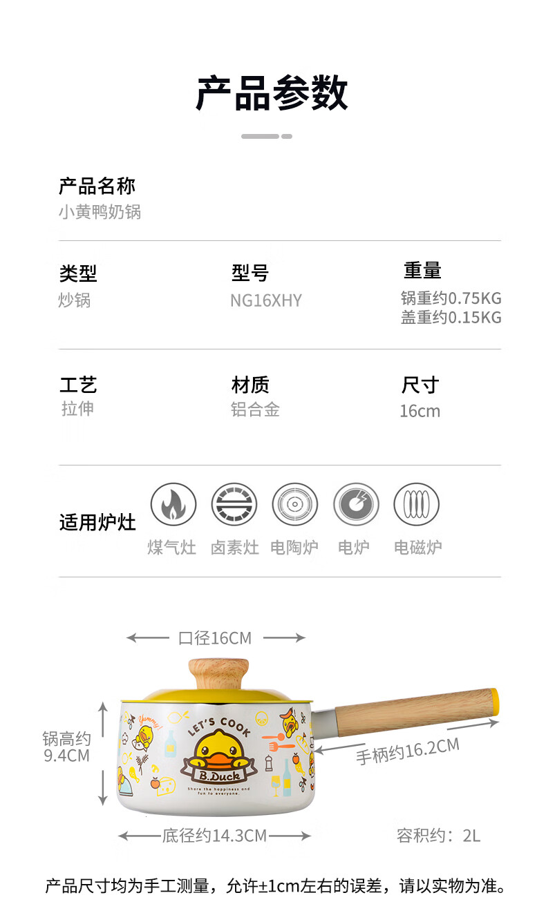 炊大皇 小黄鸭奶锅 NG16XHY 16cm 黄色(单位:只)