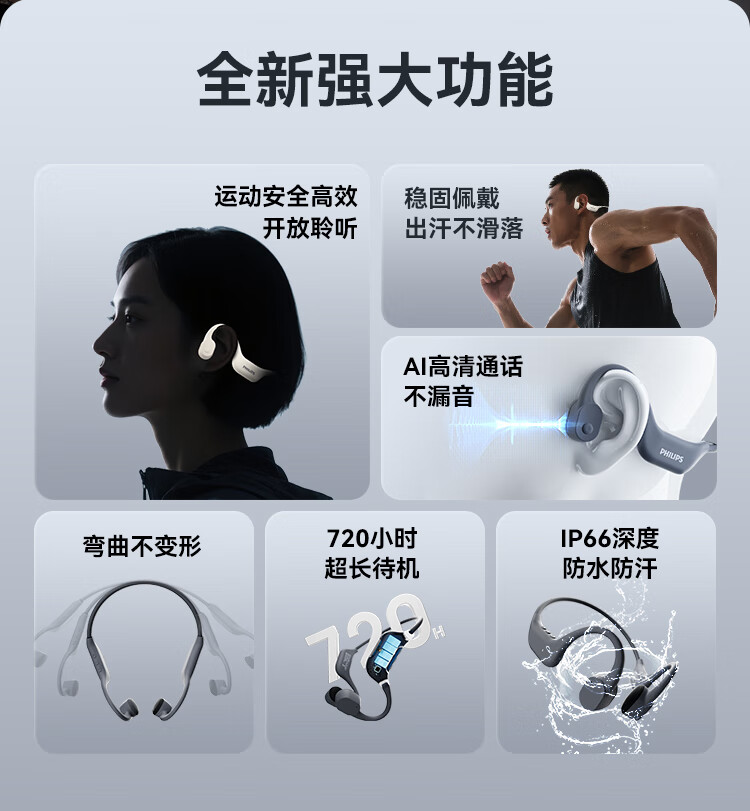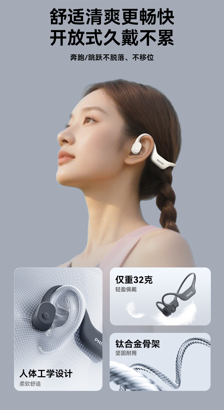 飞利浦(PHILIPS) 骨传导蓝牙耳机 TAA6609CBK/93 32g 黑色(单位:个)