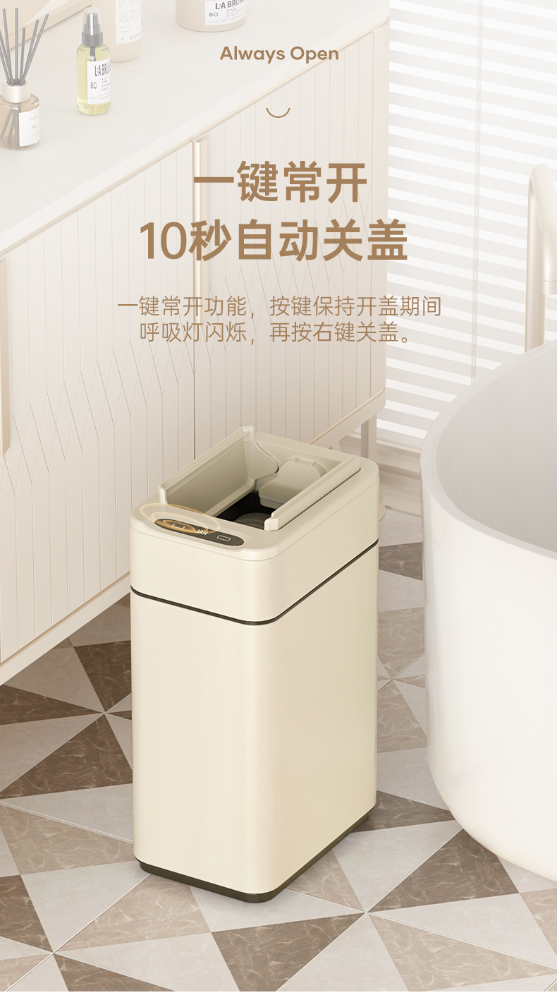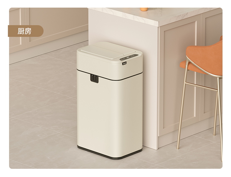 洁安惠 不锈钢双开抽绳打包垃圾桶充电款 9811D 20升 奶油色(单位:台)