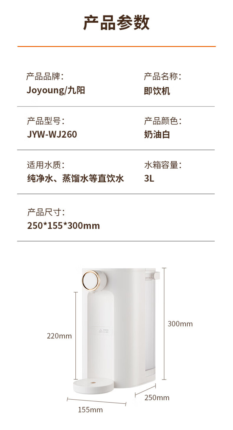 九阳(Joyoung) 即热饮水机 JYW-WJ260S 3L 奶油白(单位:台)