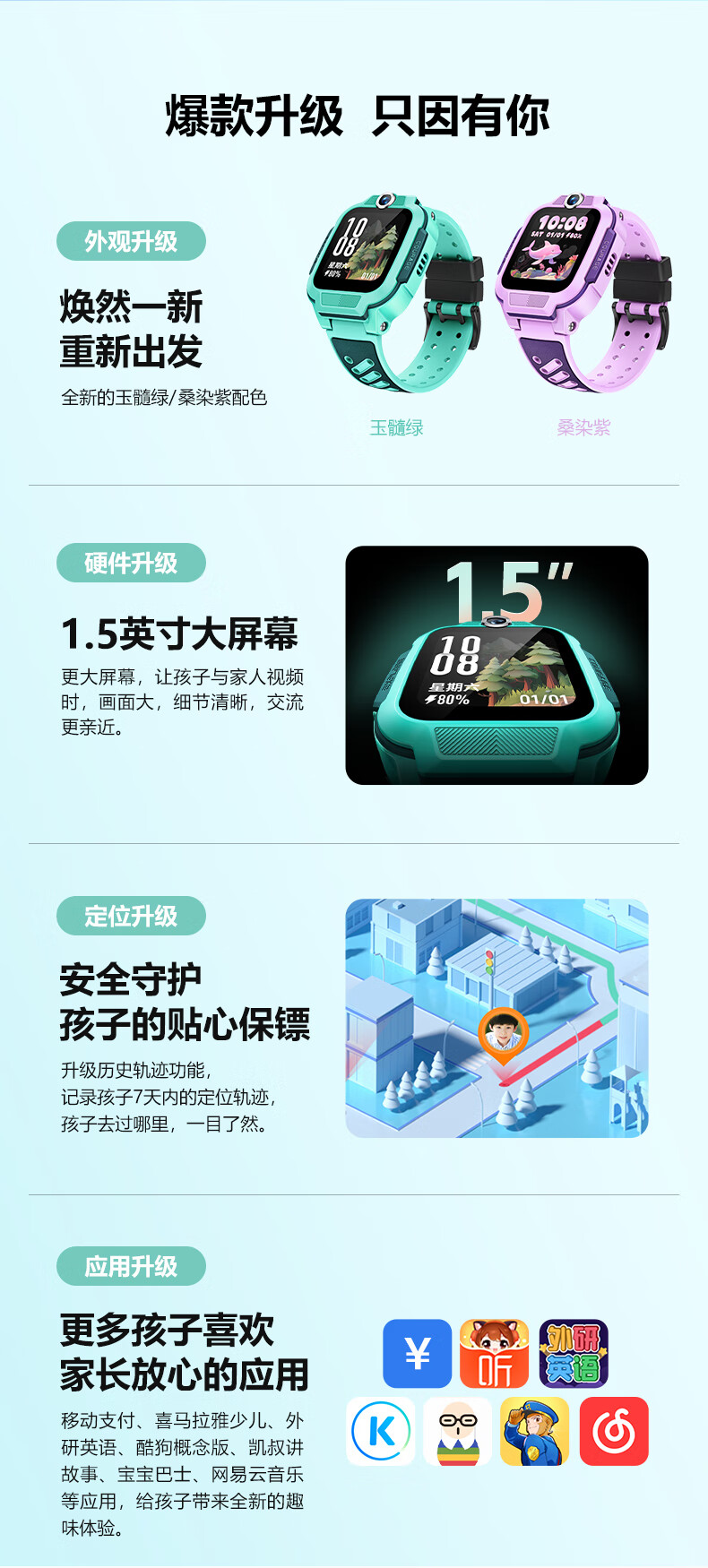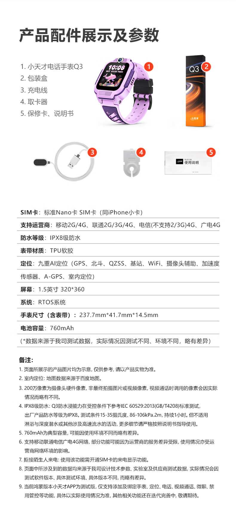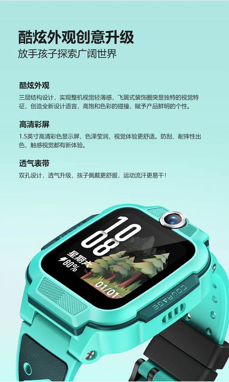 小天才 Q3儿童电话手表 W2406AC 760mAh 玉髓绿(单位:台)