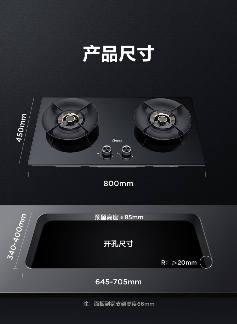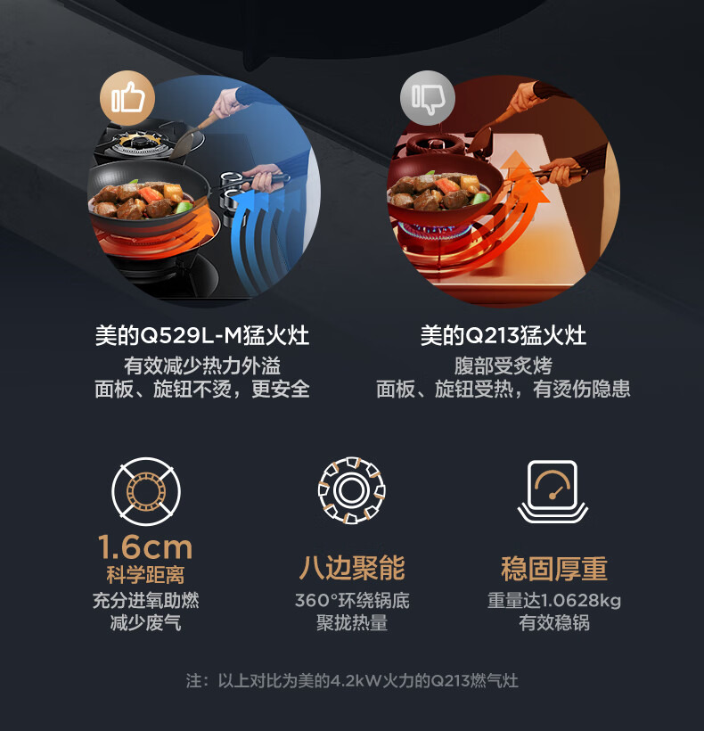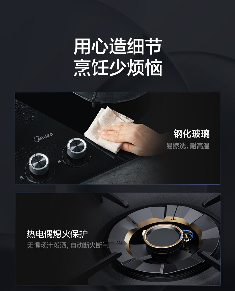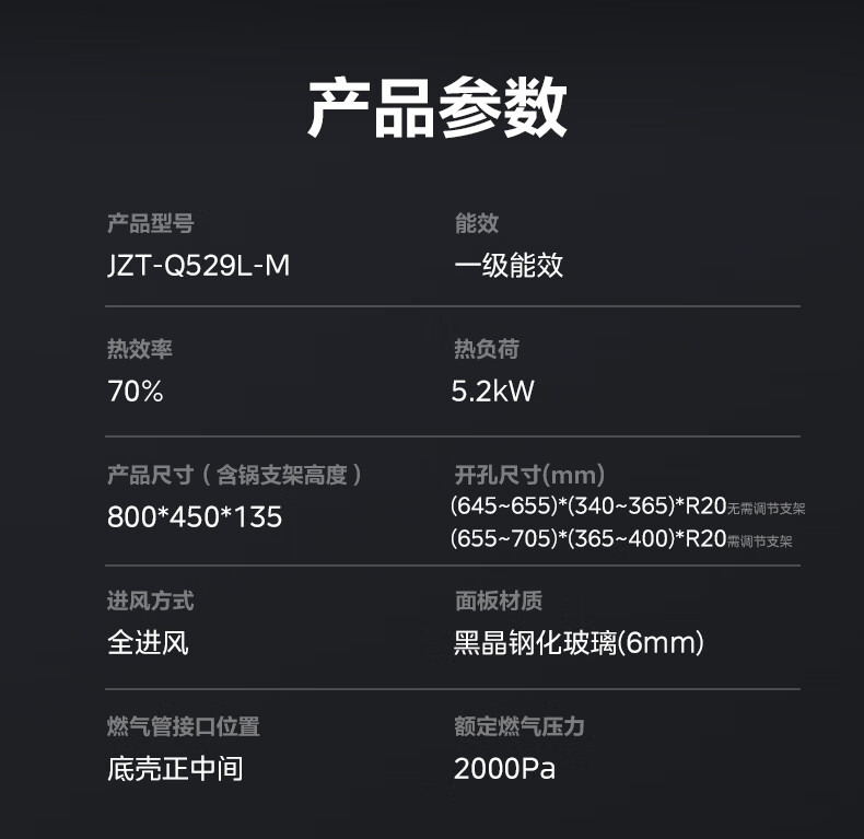 美的(Midea) 天然气燃气灶 JZT-Q529L-M 5.2kW 黑色(单位:台)