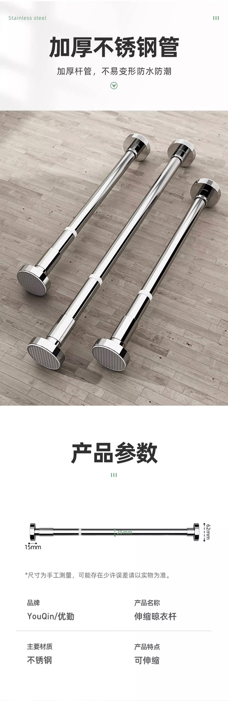 优勤(YOUQIN) 伸缩支撑杆110-200 37-49#Y 110*9*7cm 银色(单位:根)