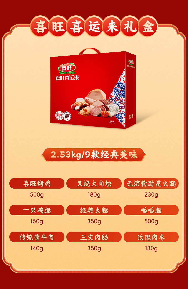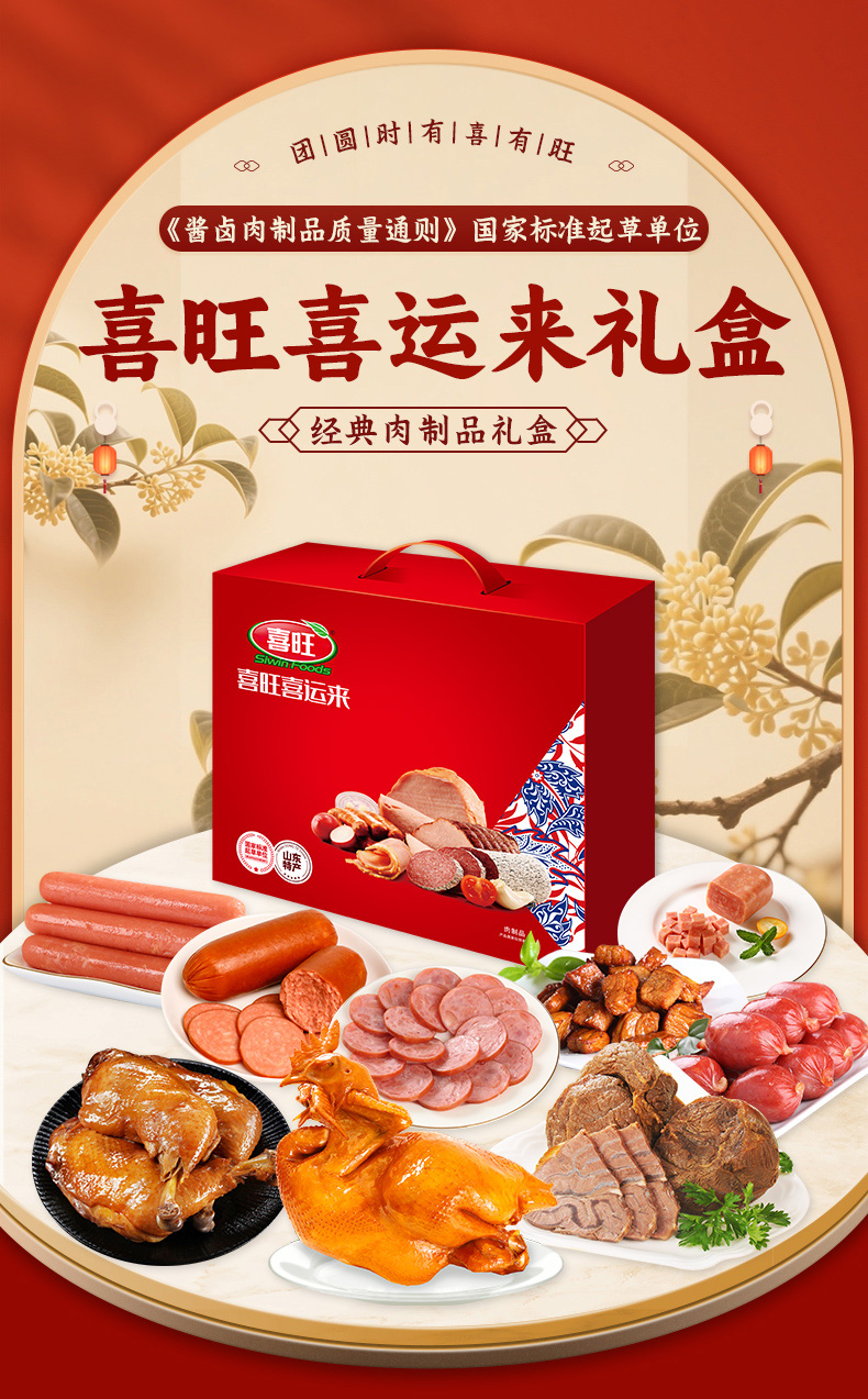 喜旺(Siwin Foods) 熟食烧鸡肉肠组合 喜旺喜运来 2530g(9款)礼盒装 混色(单位:盒)