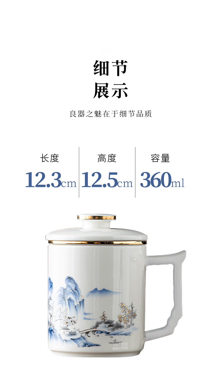 品舰 茶具套装蓝山 PJL052 茶杯*1(360ml)、礼盒*1 白色(单位:套)