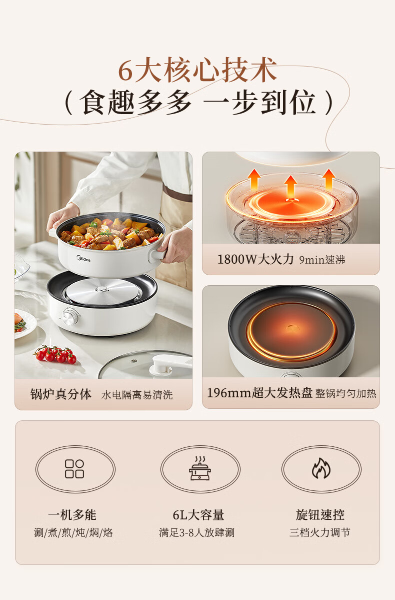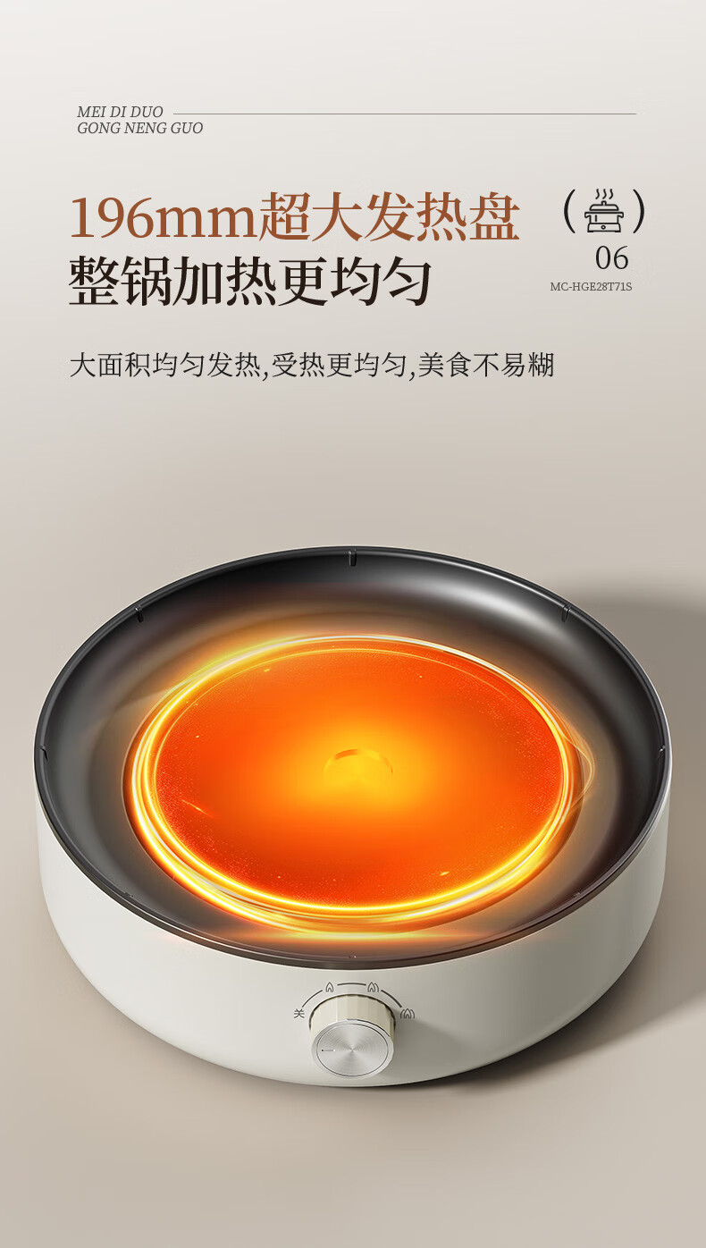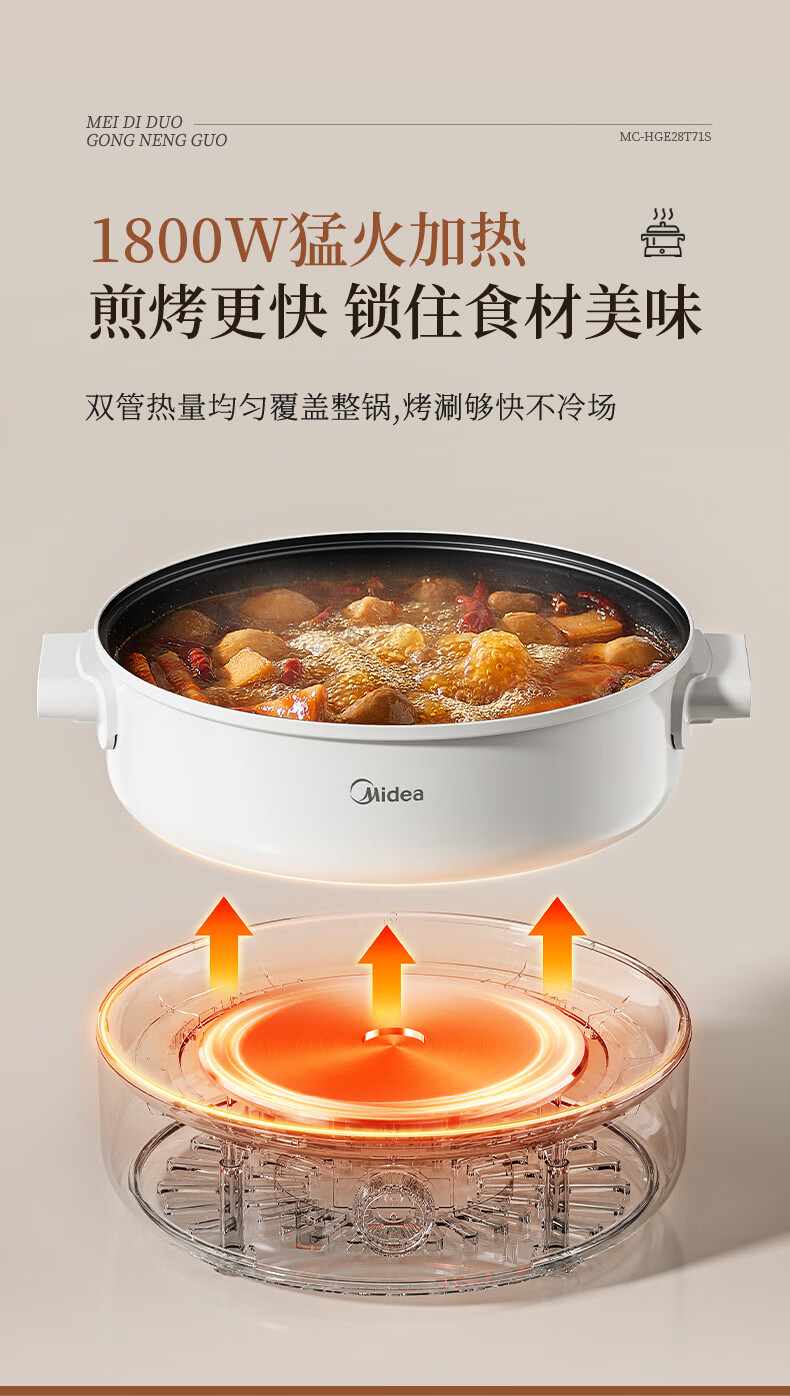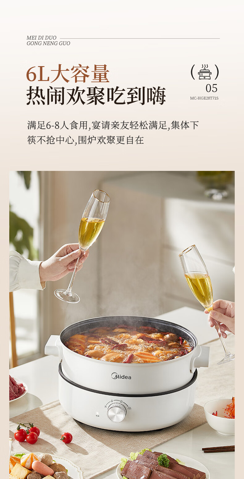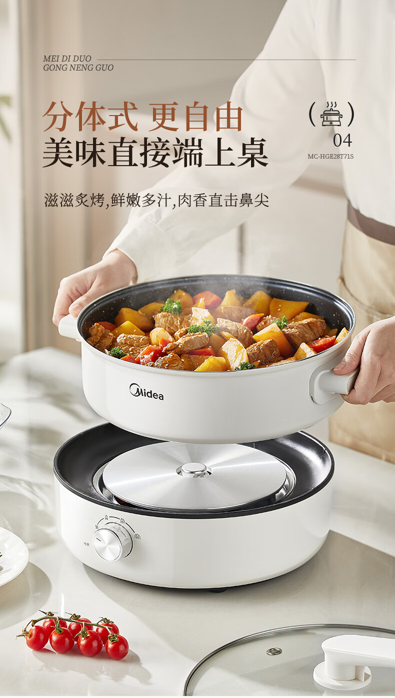 美的(Midea) 家用多功能锅分体式 电火锅 MC-HGE28T71S 6L 白色(单位:台)