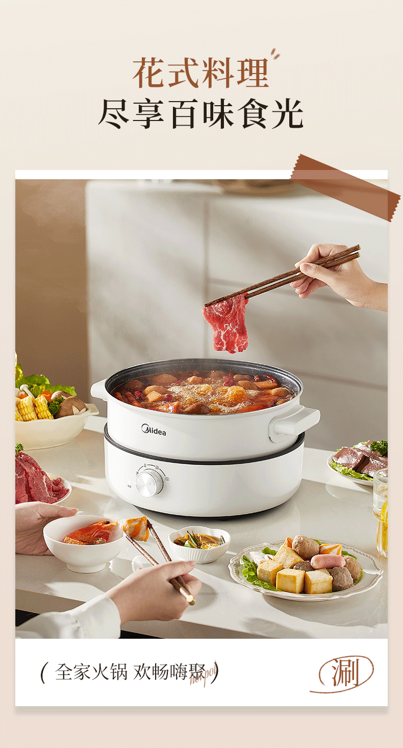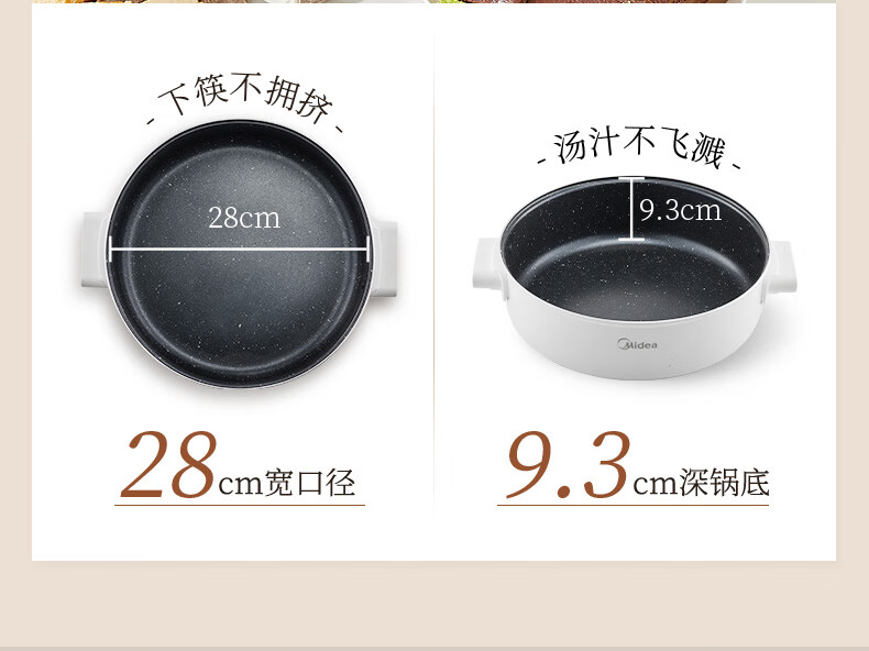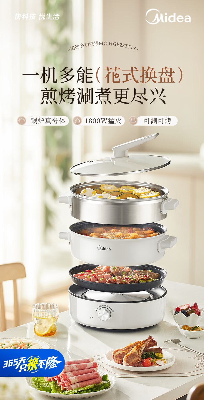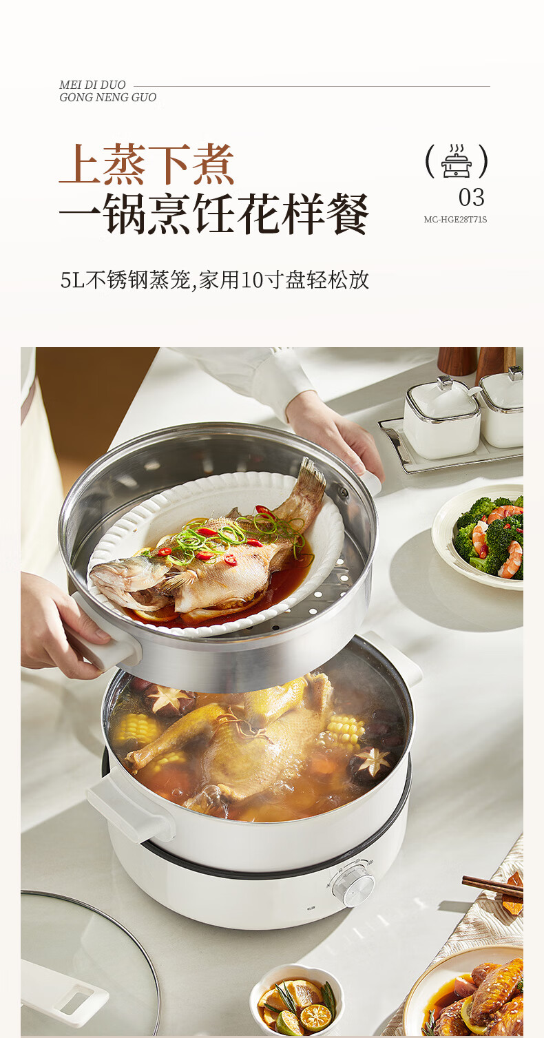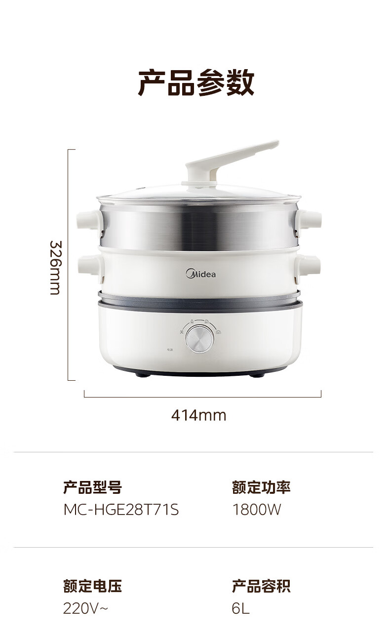 美的(Midea) 家用多功能锅分体式 电火锅 MC-HGE28T71S 6L 白色(单位:台)