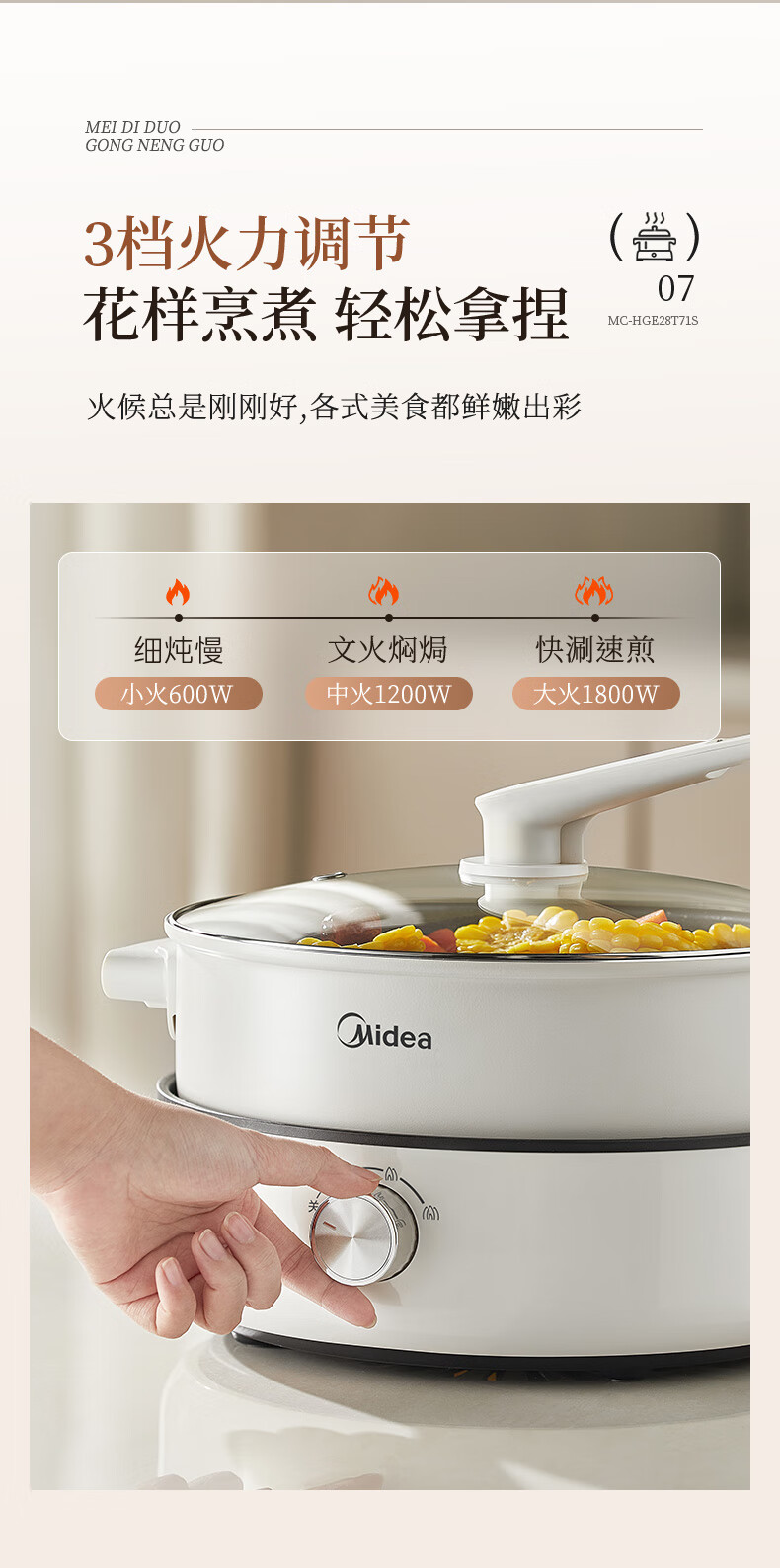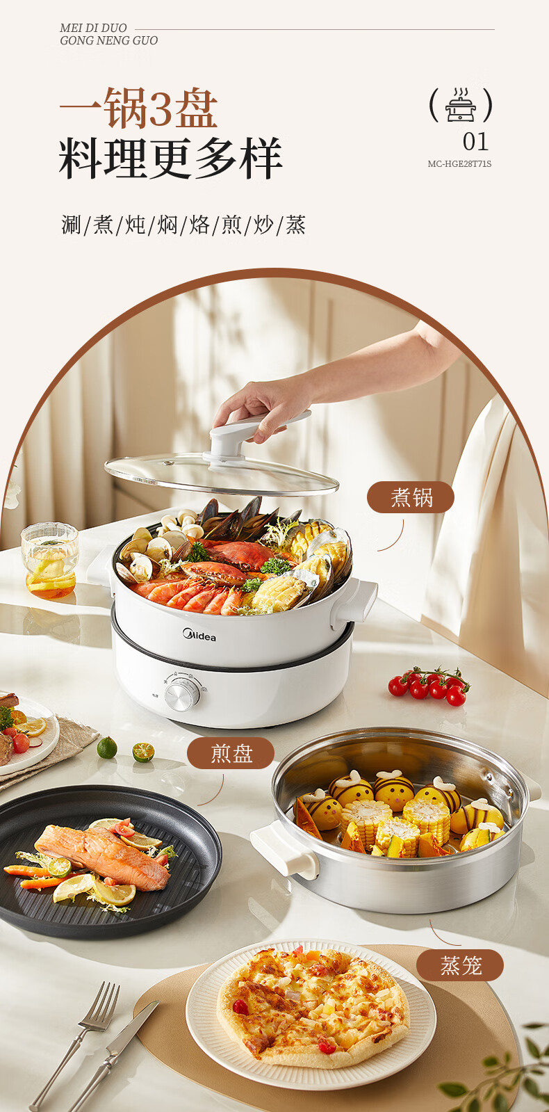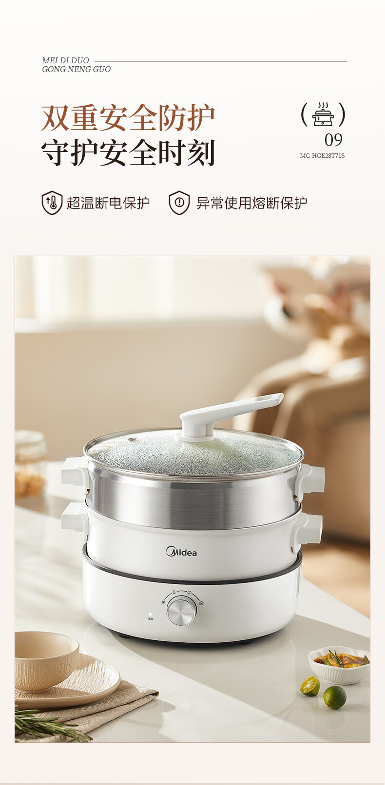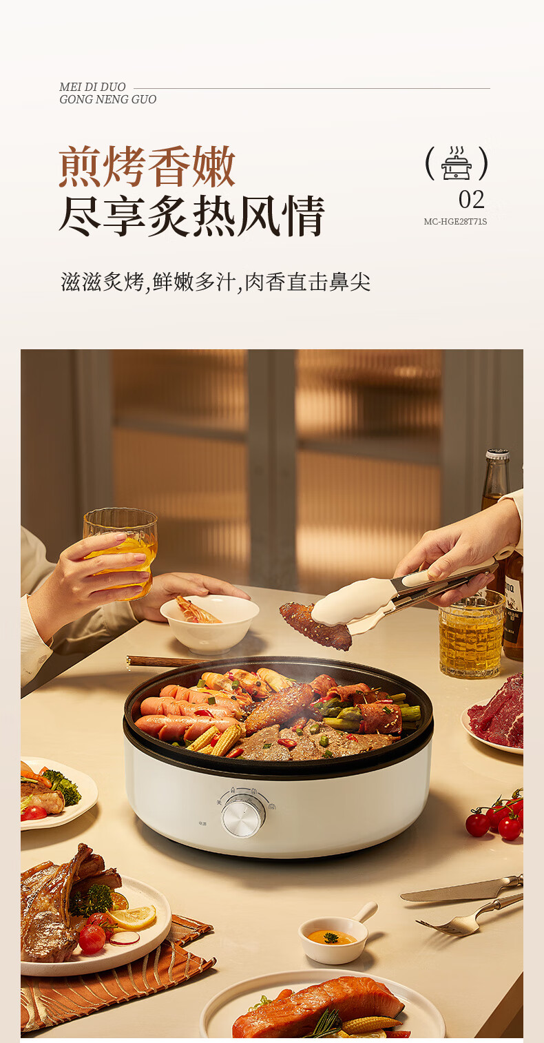 美的(Midea) 家用多功能锅分体式 电火锅 MC-HGE28T71S 6L 白色(单位:台)