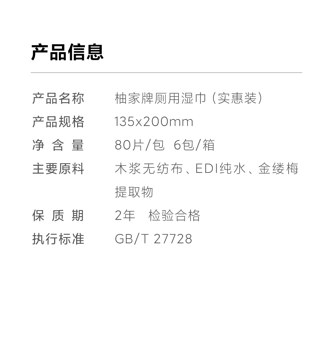 柚家 厕用湿巾 12533 6包装 白色(单位:组)