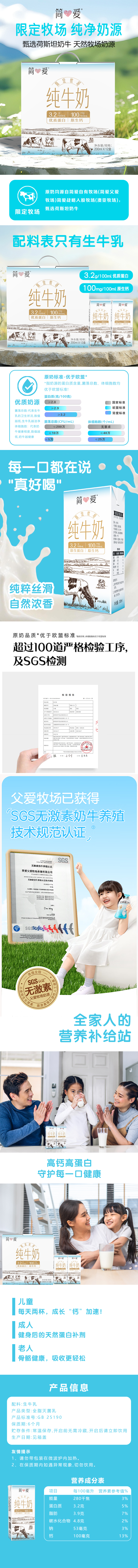 简爱 纯牛奶 JA-01 200ml*12 尼加拉蓝(单位:盒)