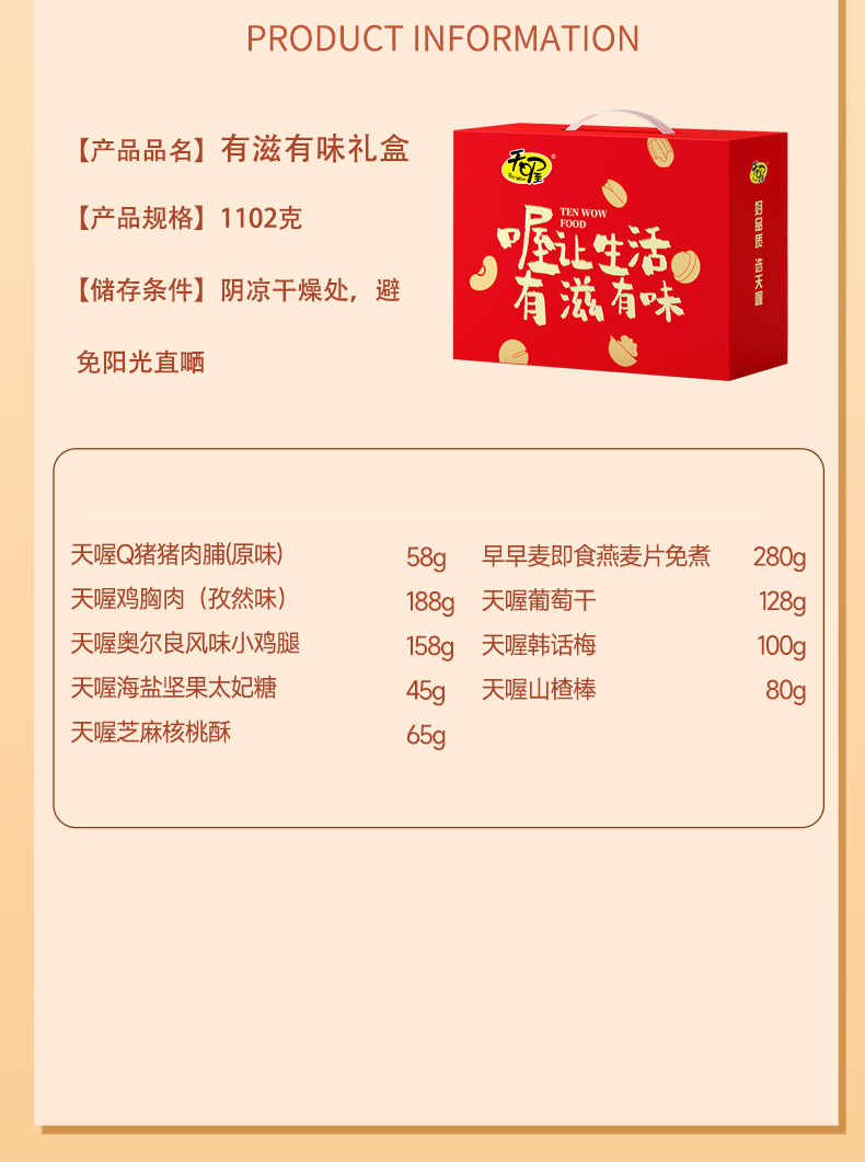 天喔(Tenwow) 有滋有味零食礼盒 礼盒装 1102g 红色(单位:提)