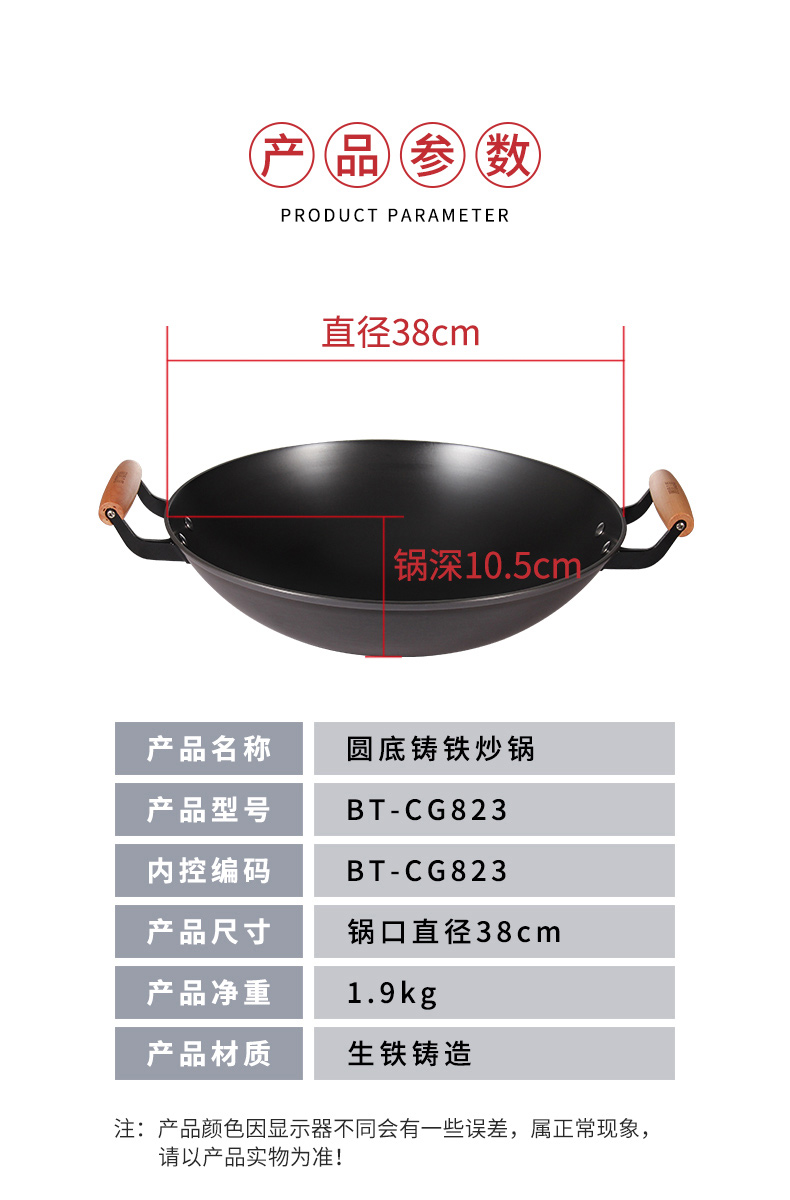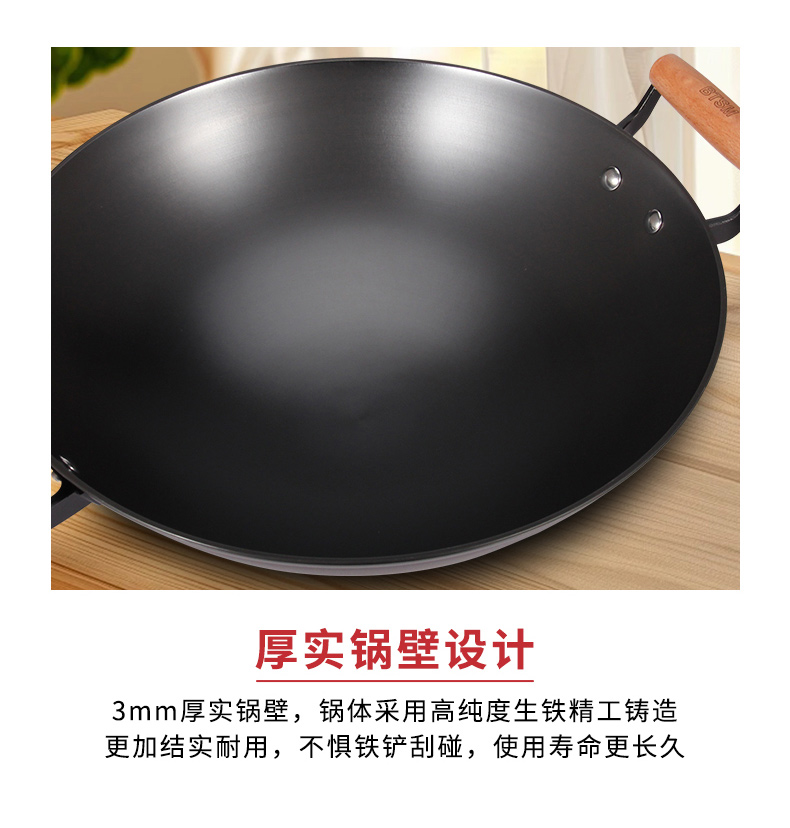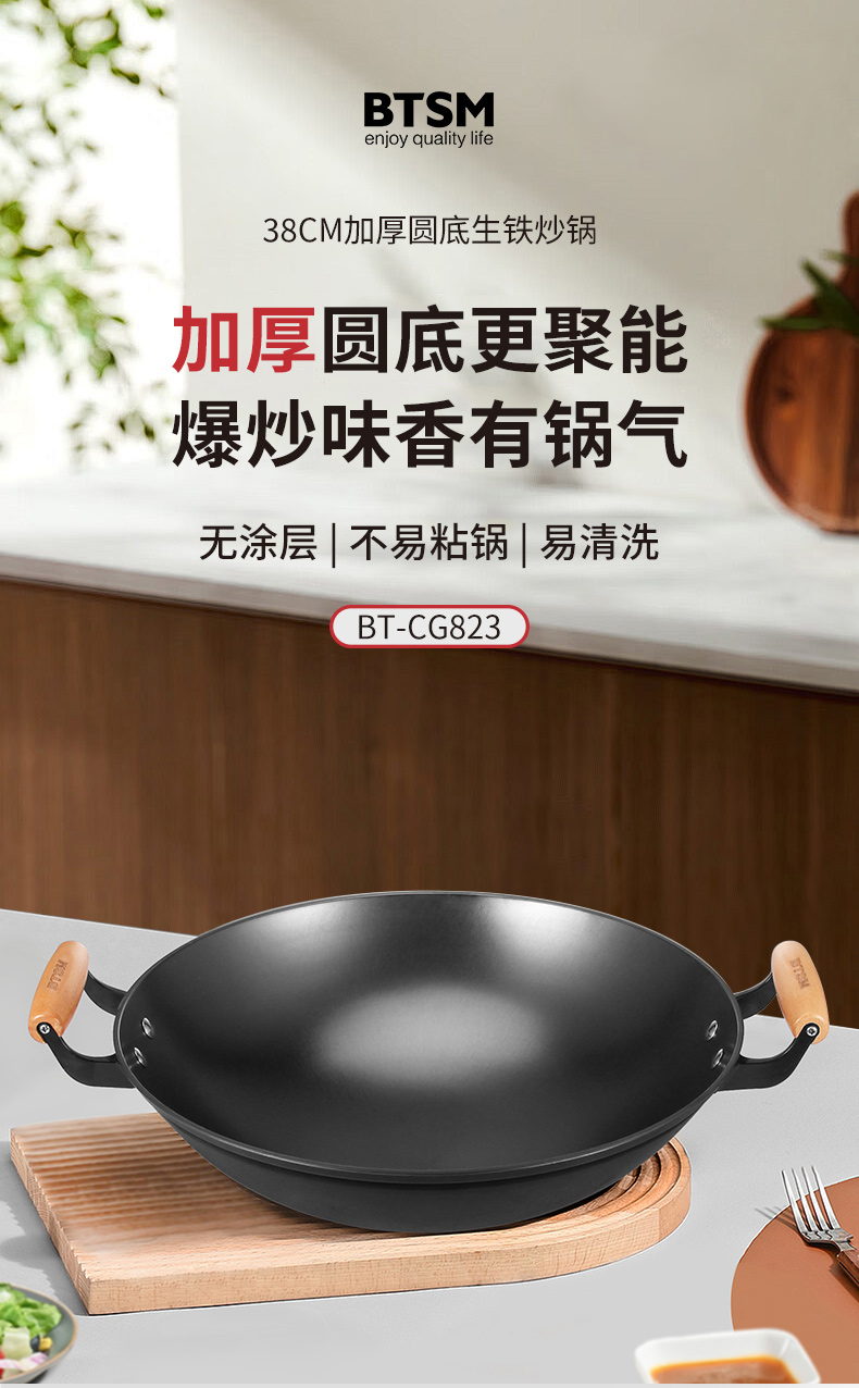 BTSM 双耳精铁炒锅 BT-CG823 38cm 黑色(单位:个)