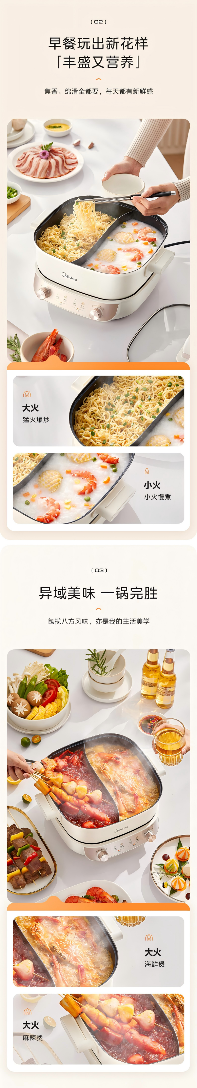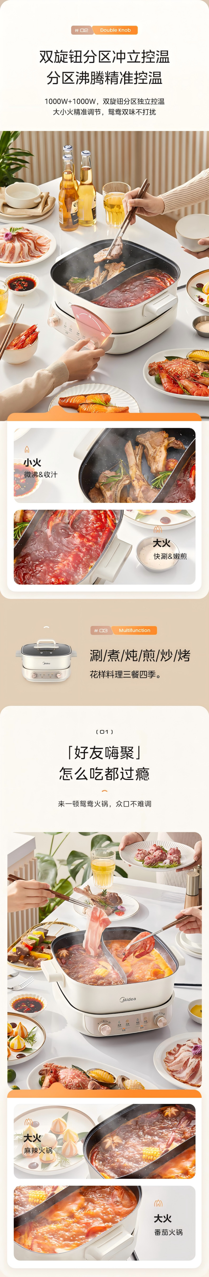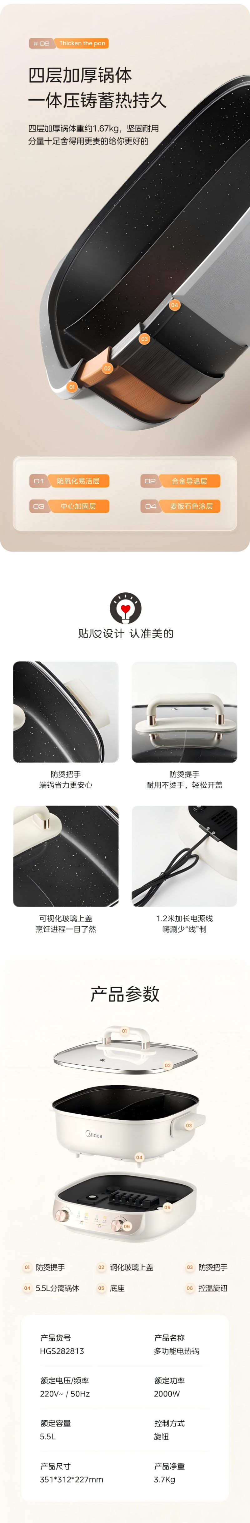 美的(Midea) 电火锅 MC-HGS282813 容量5.5L 白色(单位:台)