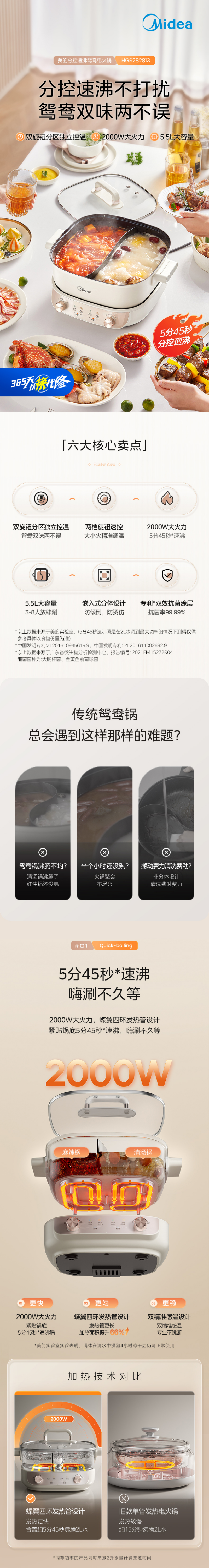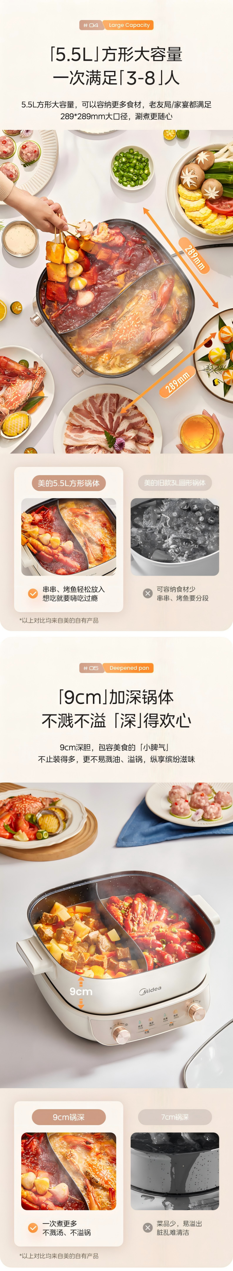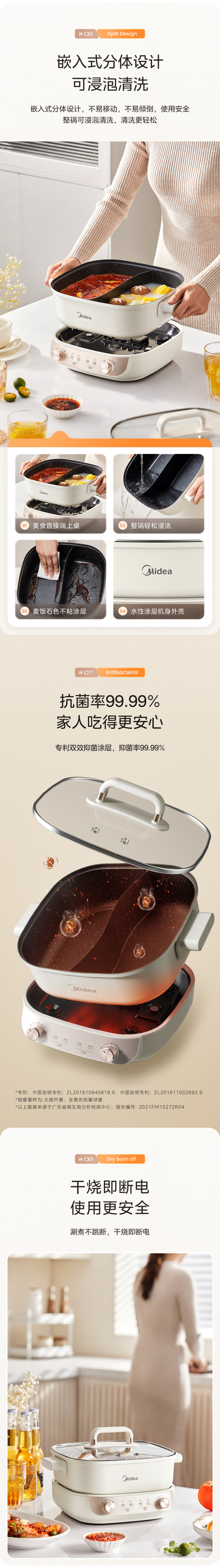 美的(Midea) 电火锅 MC-HGS282813 容量5.5L 白色(单位:台)