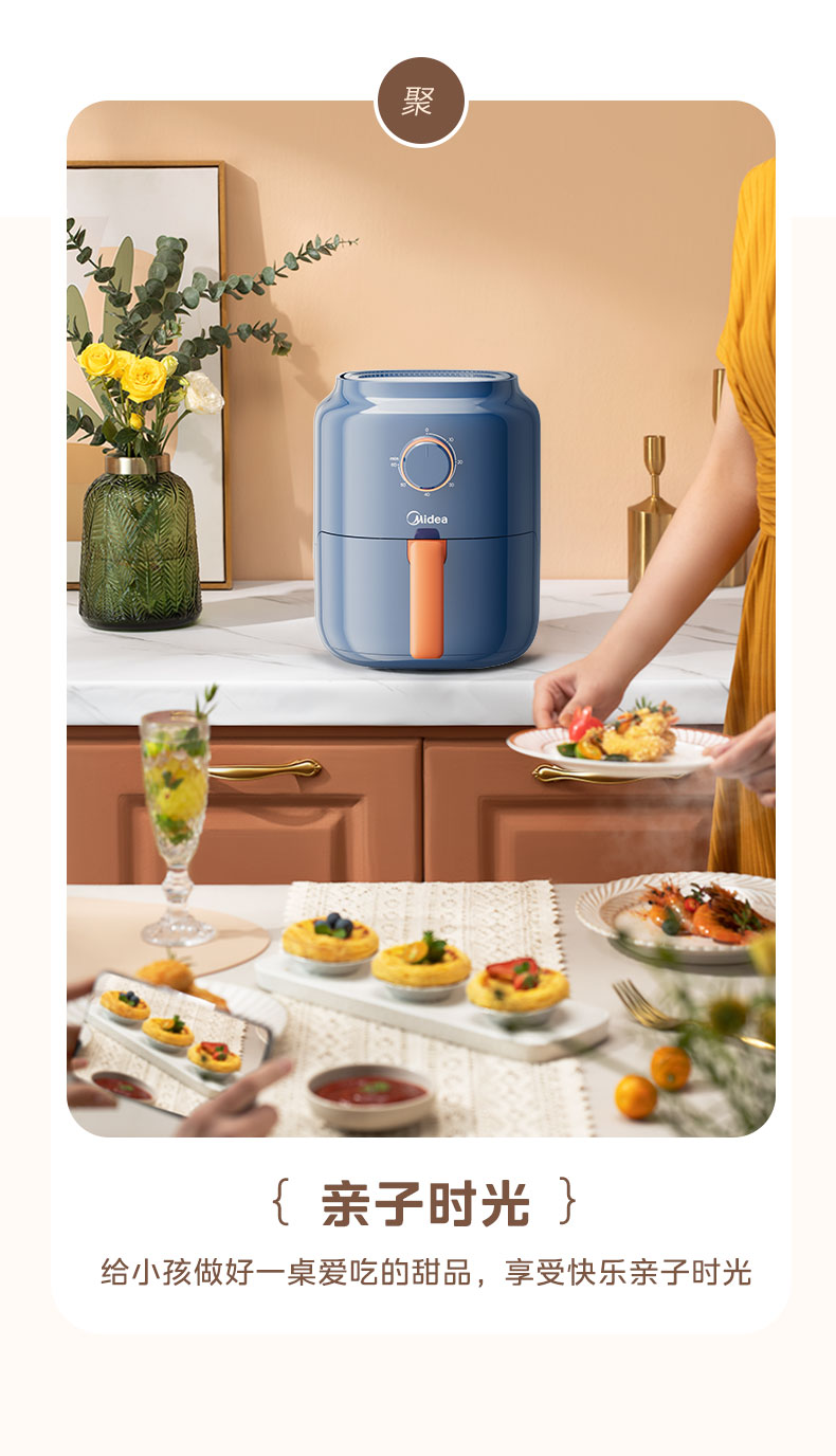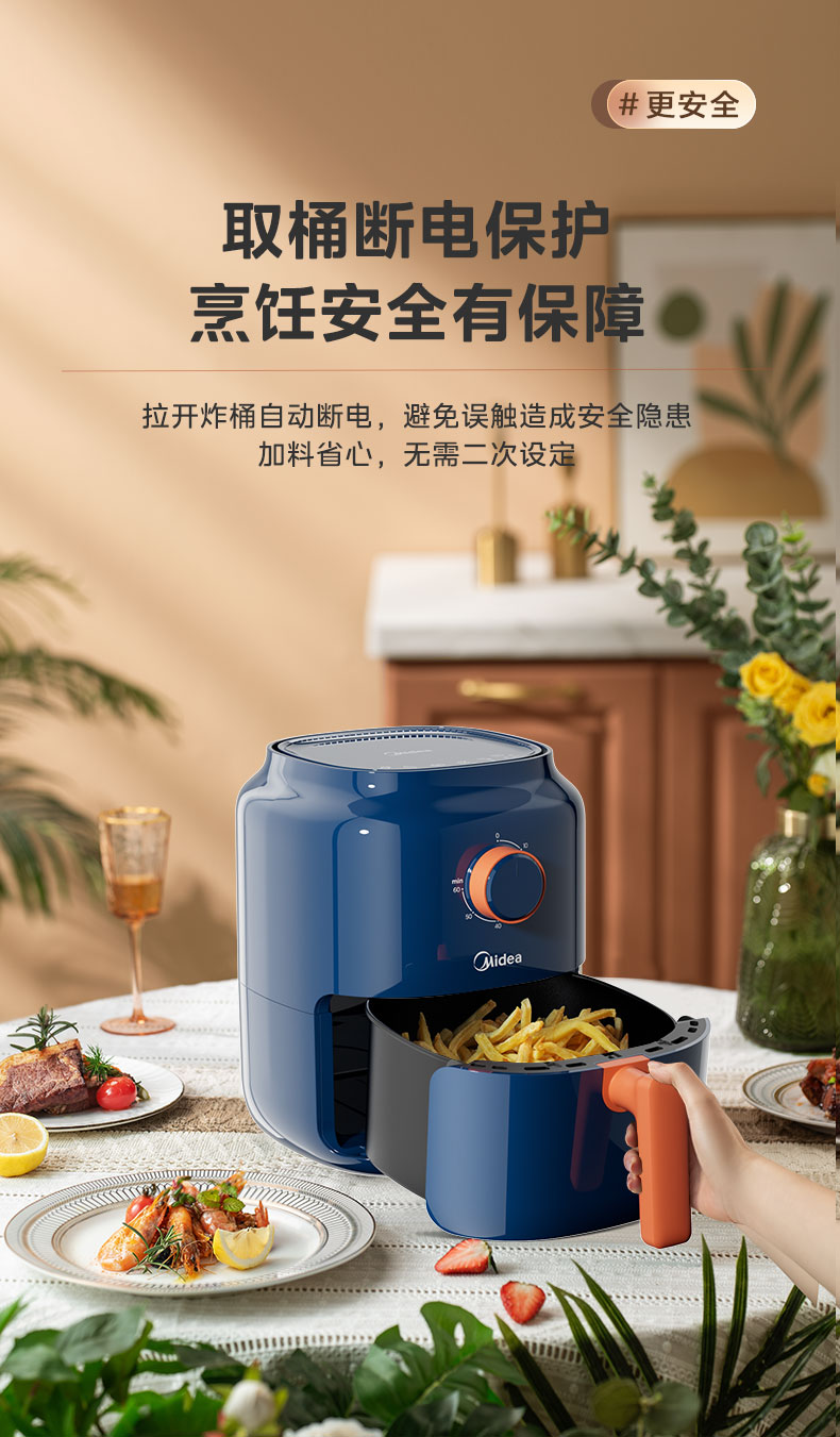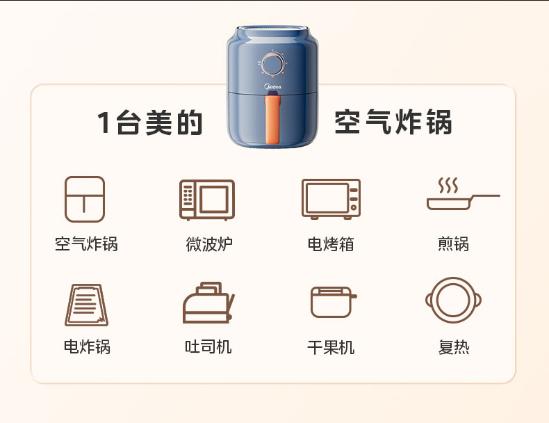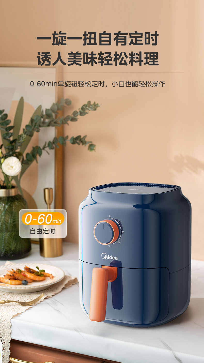 美的(Midea) 空气炸锅 MF-KZ30E201 3L 蓝色(单位:台)