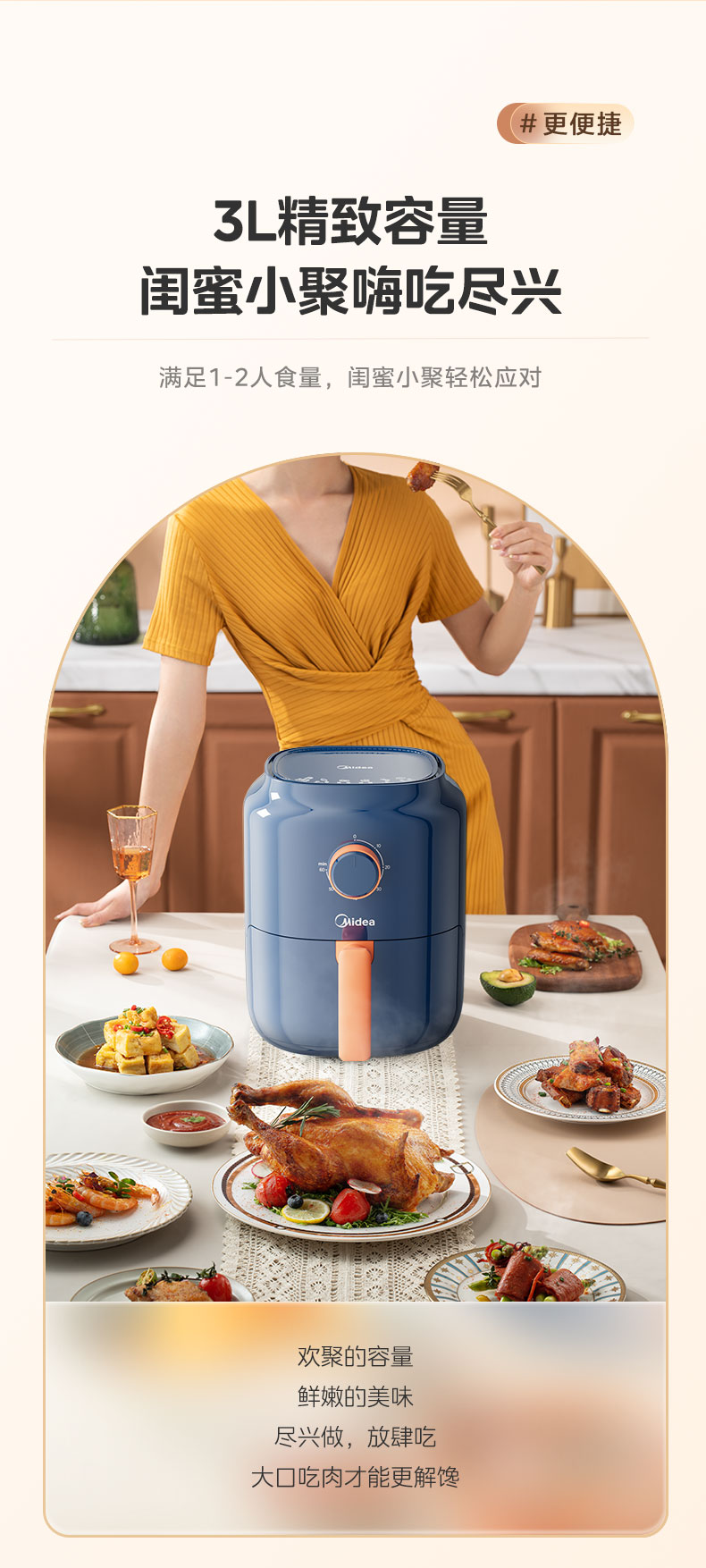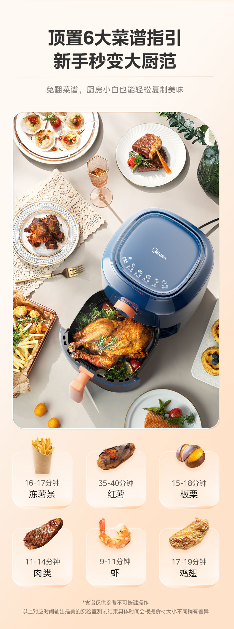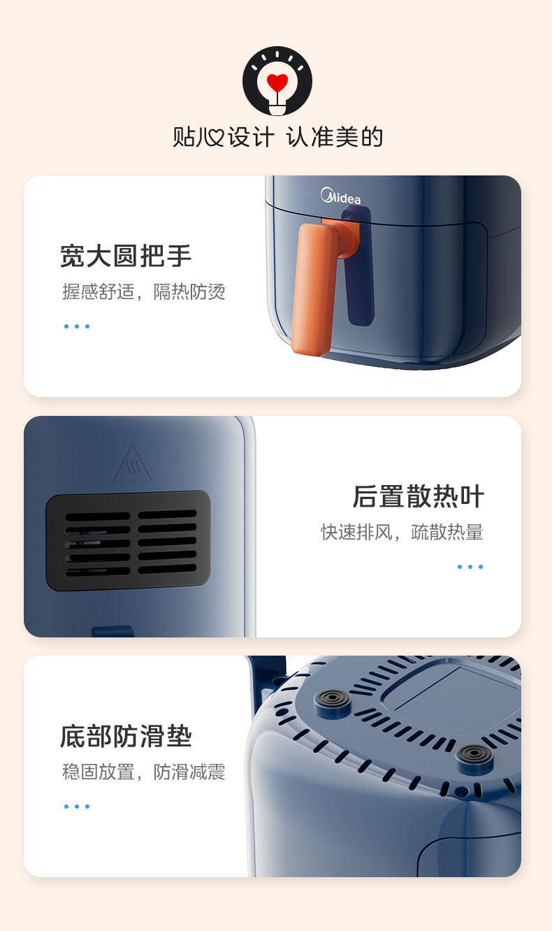 美的(Midea) 空气炸锅 MF-KZ30E201 3L 蓝色(单位:台)