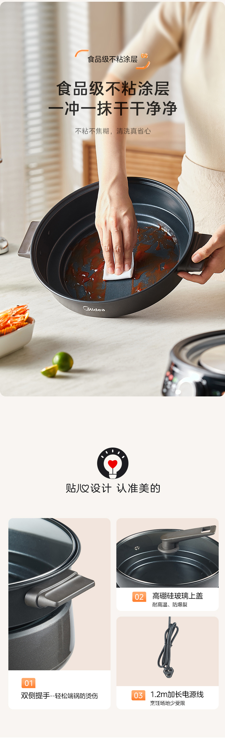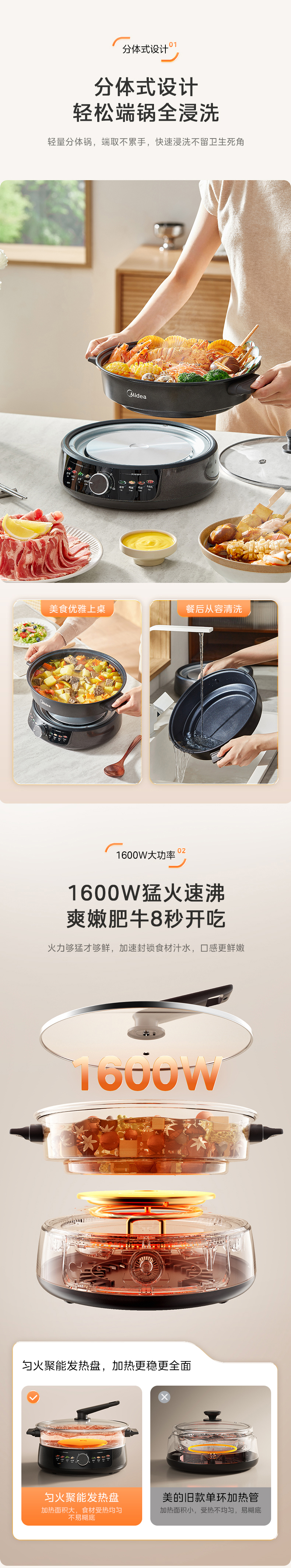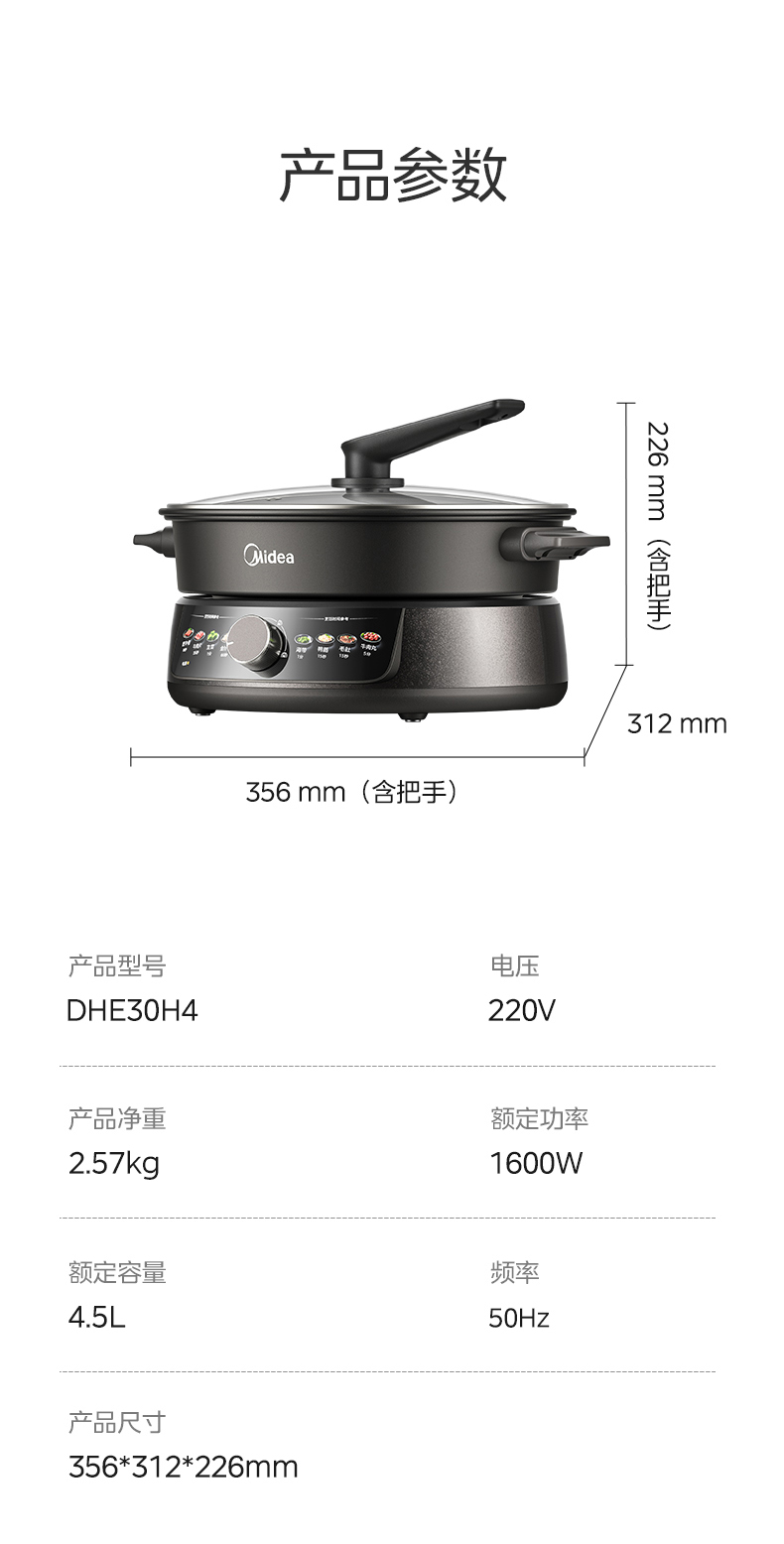 美的(Midea) 电火锅 MC-DHE30H4 5L 钛雅灰(单位:台)