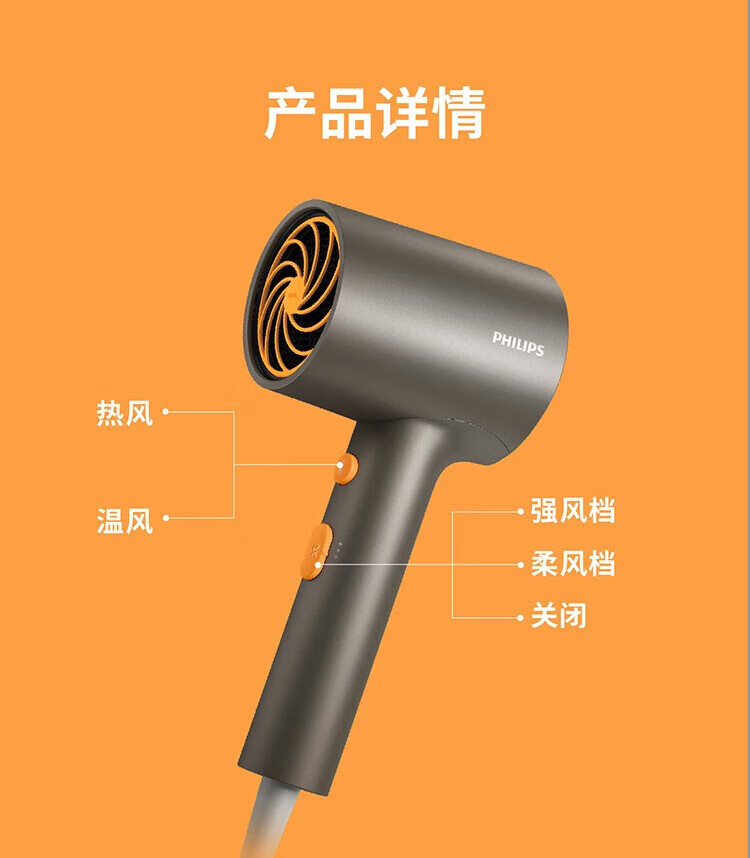 飞利浦(PHILIPS) 电吹风 BHD321 1600W 银灰色(单位:个)