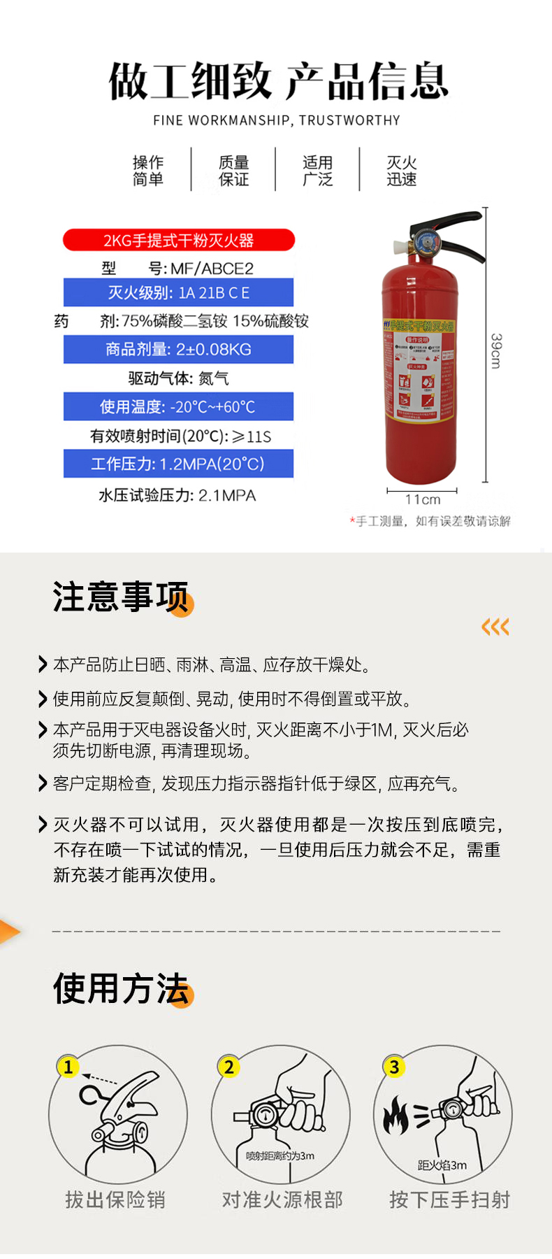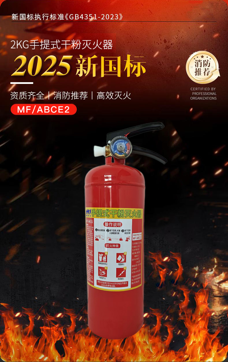 虎鲸安 手提式干粉灭火器 2公斤 MF/ABCE2 390*110mm 红色(单位:瓶)