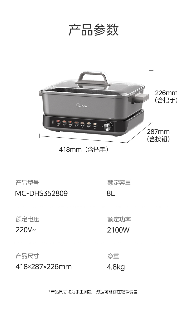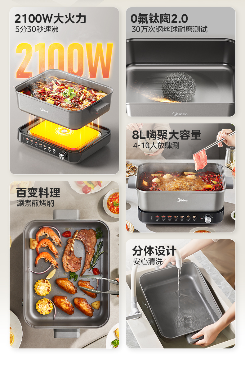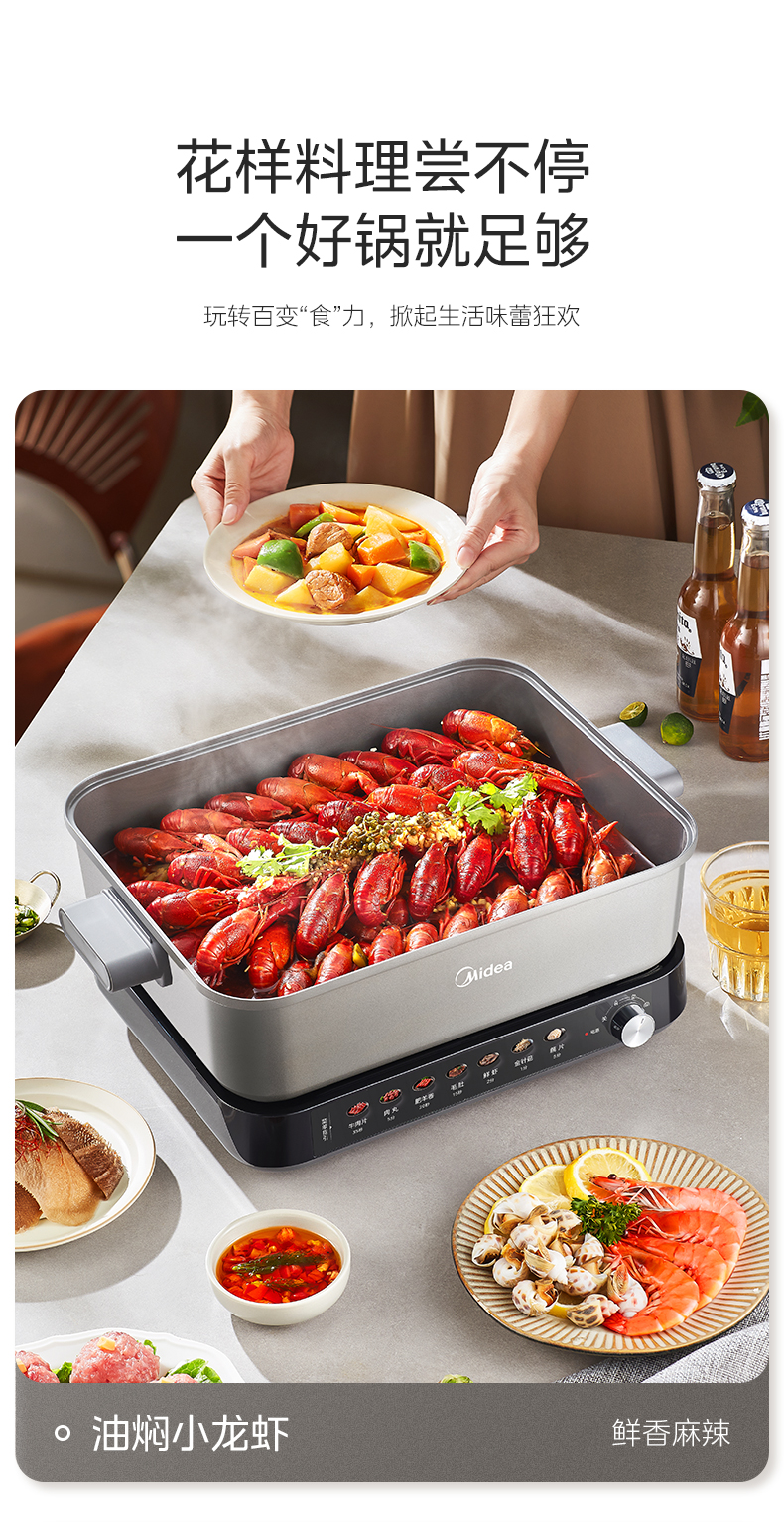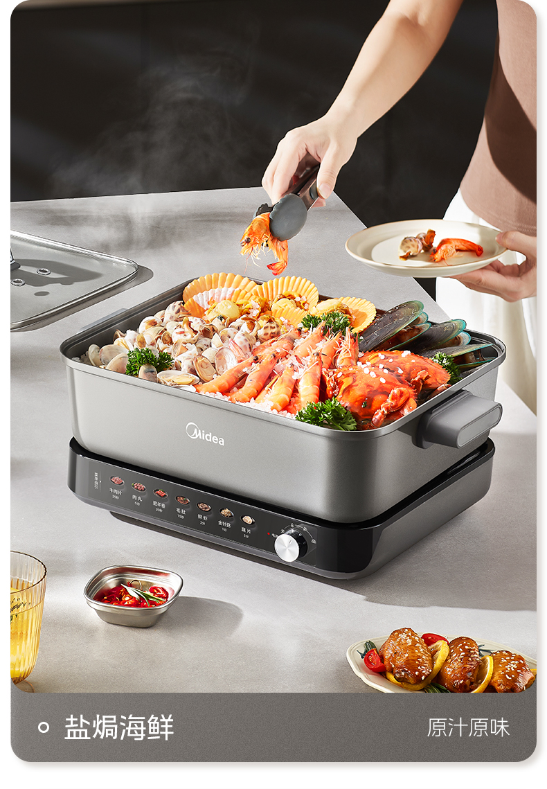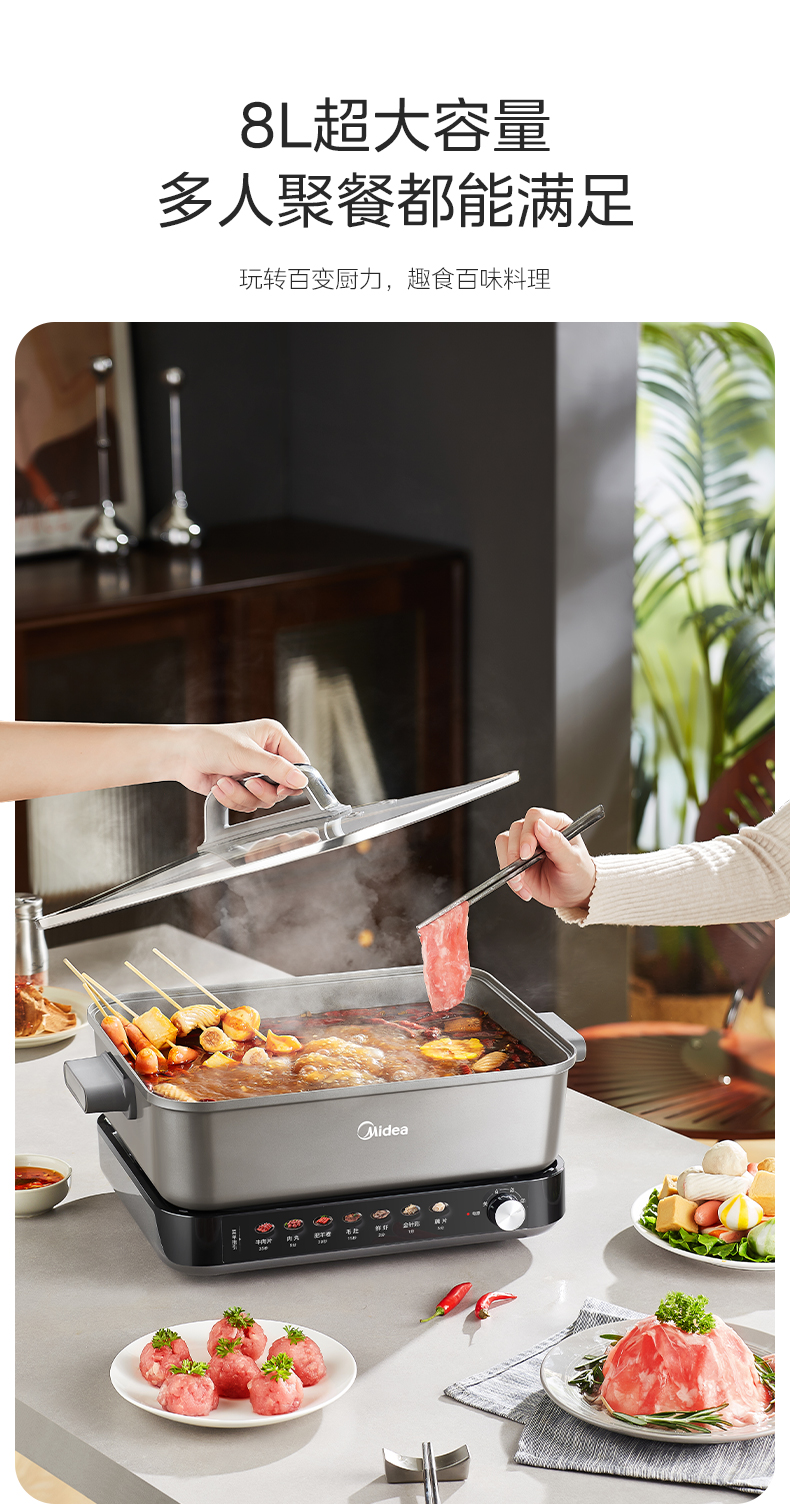 美的(Midea) 多功能电火锅 煎炒炖煮涮烤多用锅 MC-DHS352809 8L 银色(单位:台)