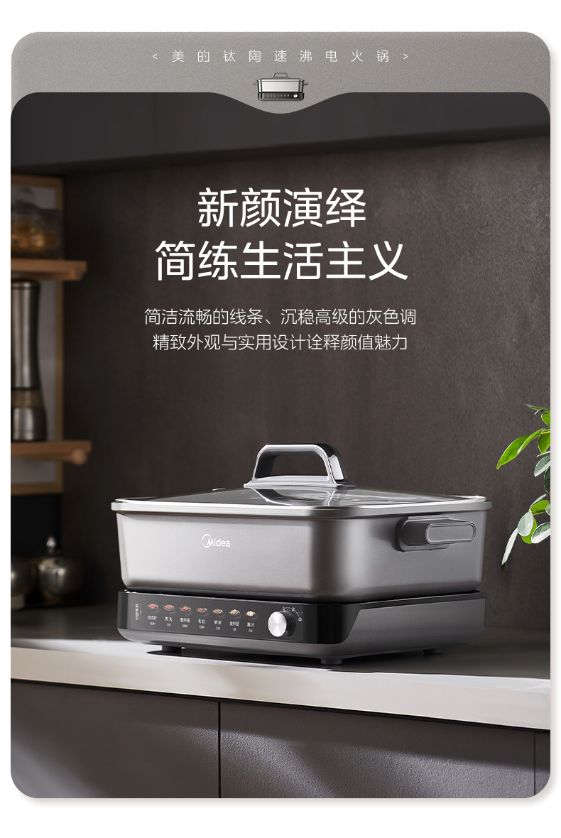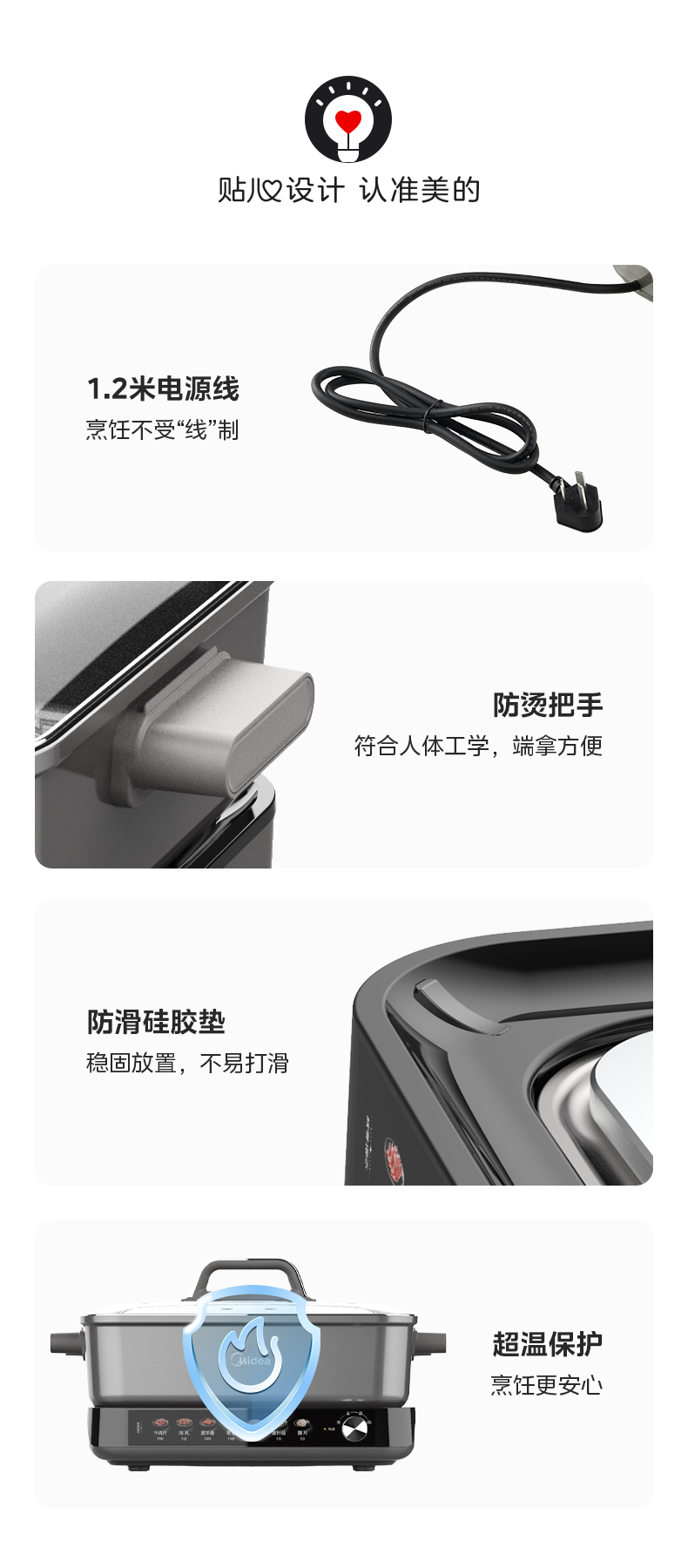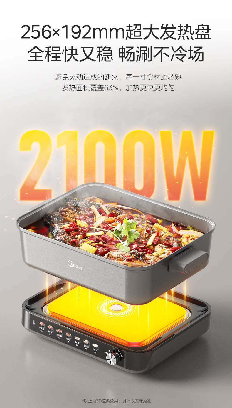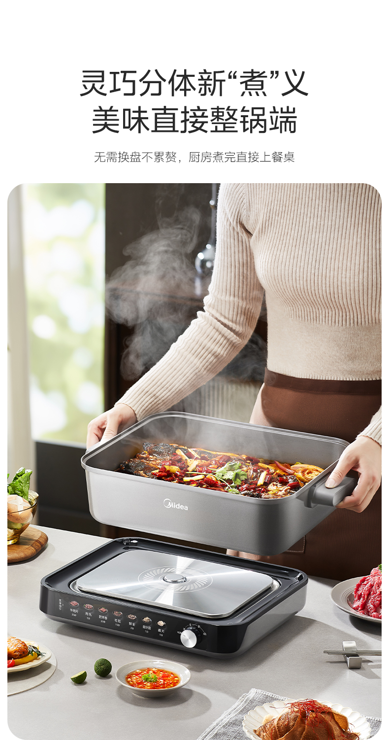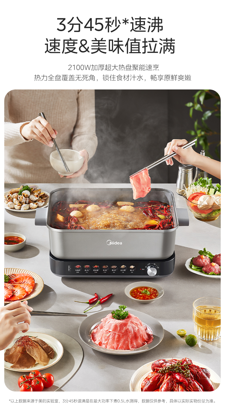 美的(Midea) 多功能电火锅 煎炒炖煮涮烤多用锅 MC-DHS352809 8L 银色(单位:台)