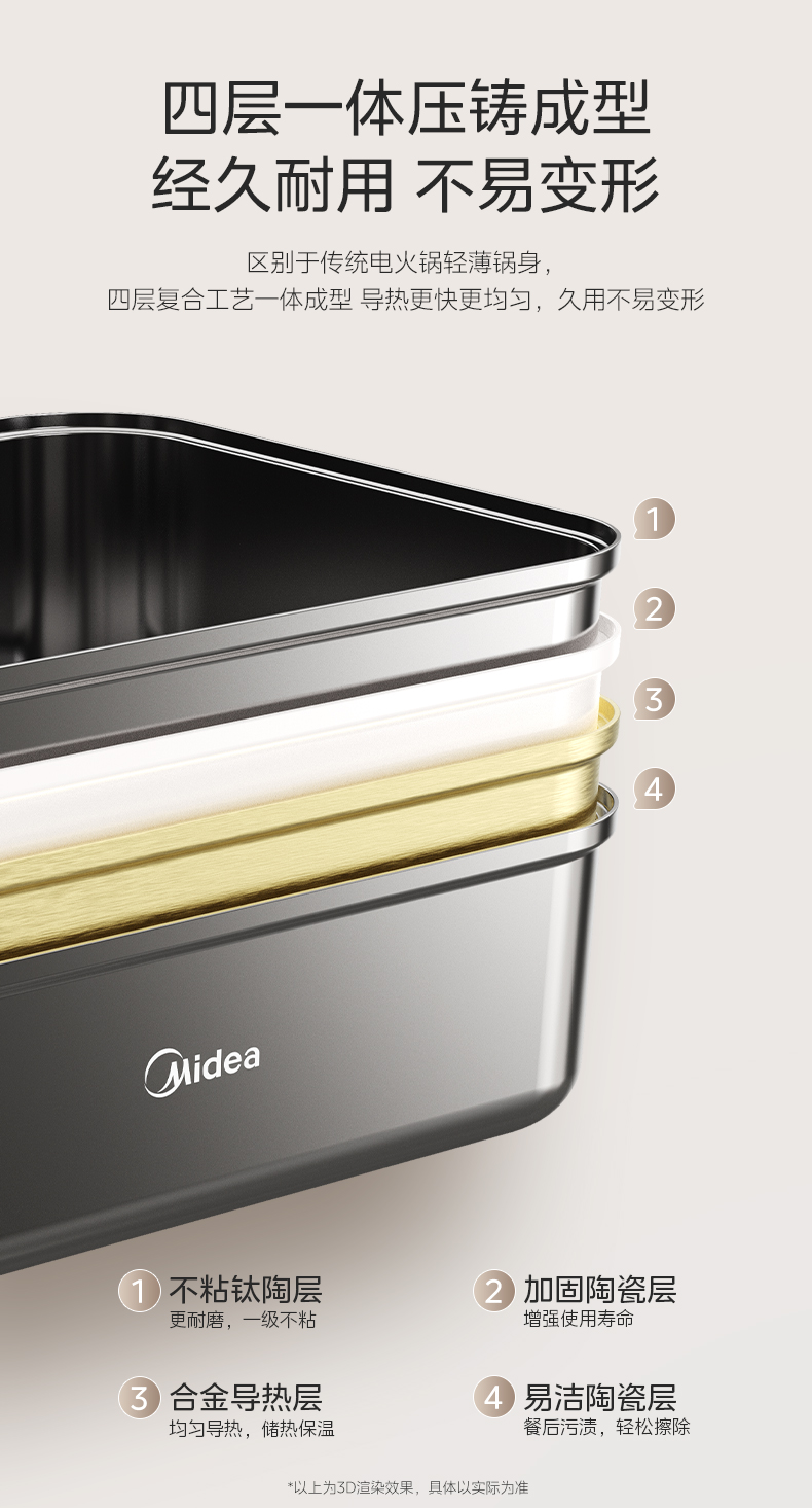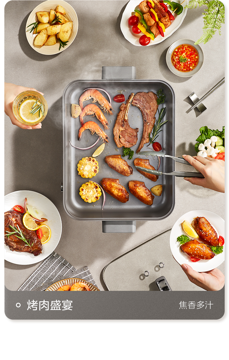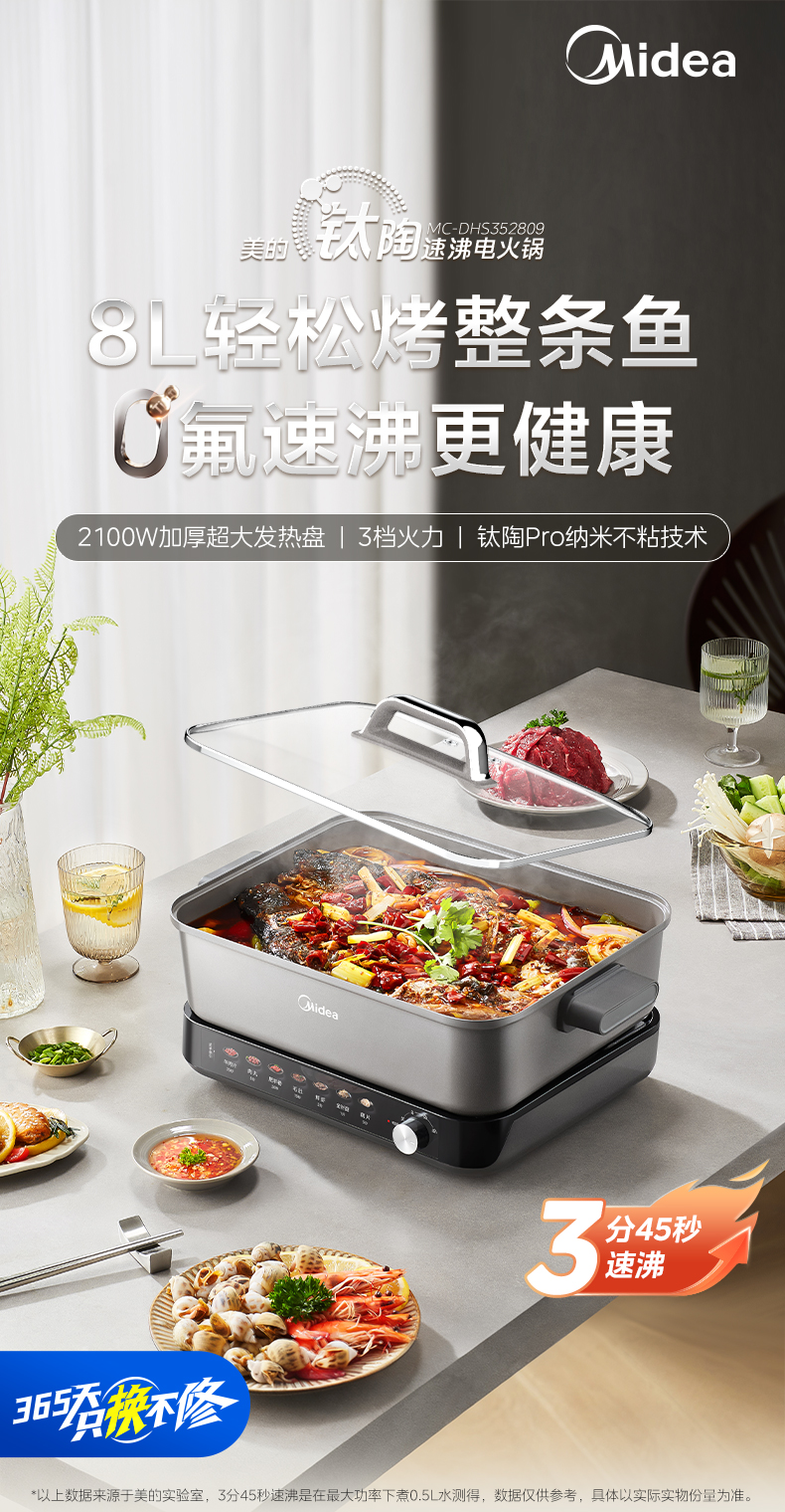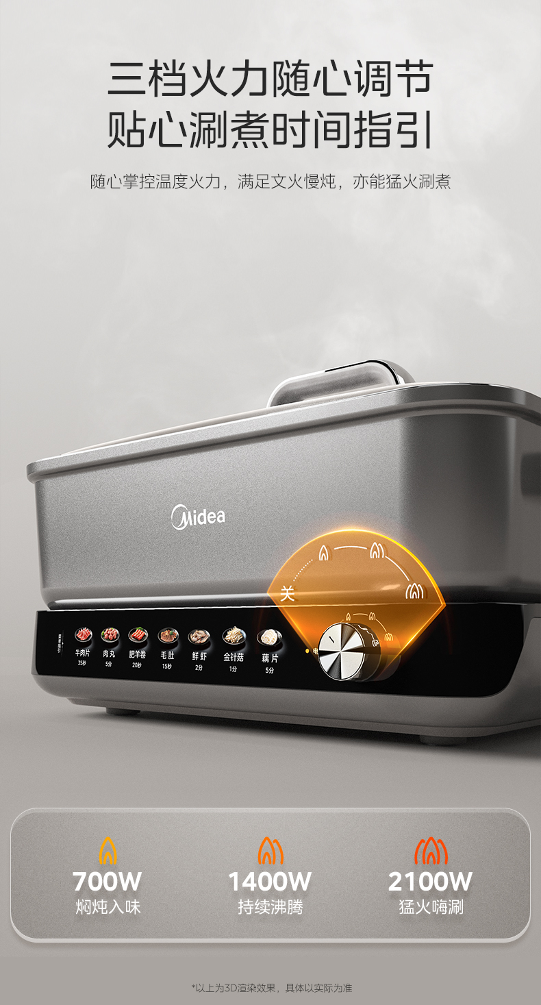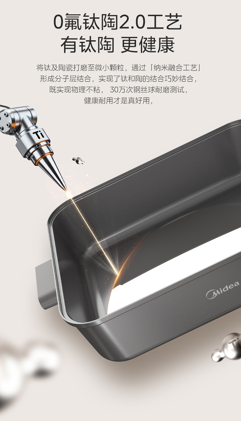 美的(Midea) 多功能电火锅 煎炒炖煮涮烤多用锅 MC-DHS352809 8L 银色(单位:台)