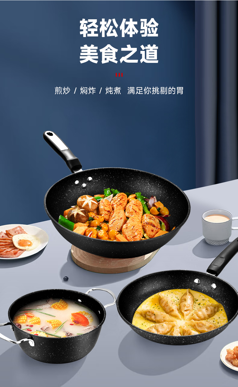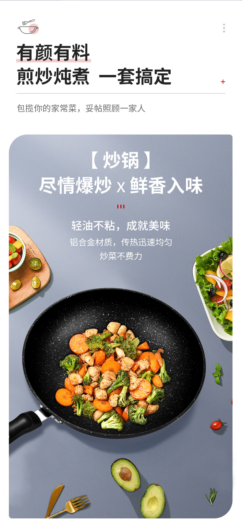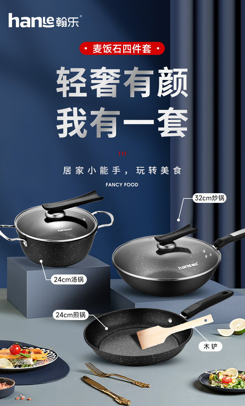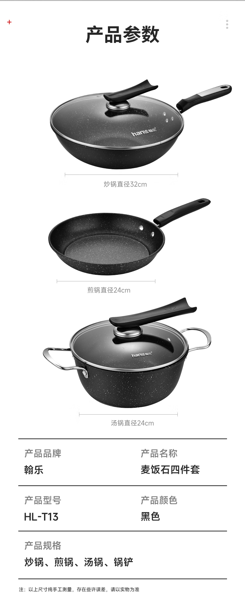 翰乐 炒锅套装 HL-T13 麦饭石四件套 曜石黑(单位:套)