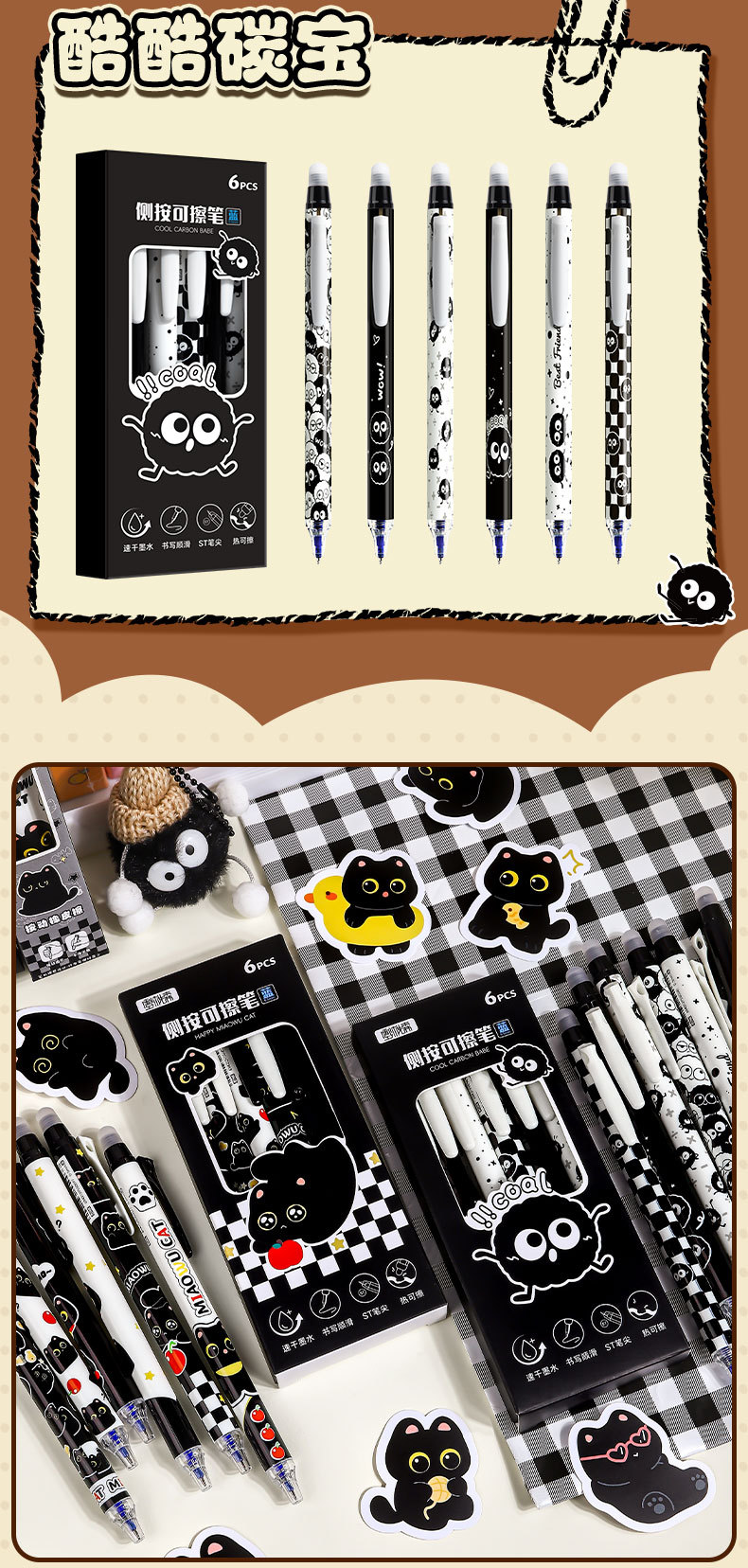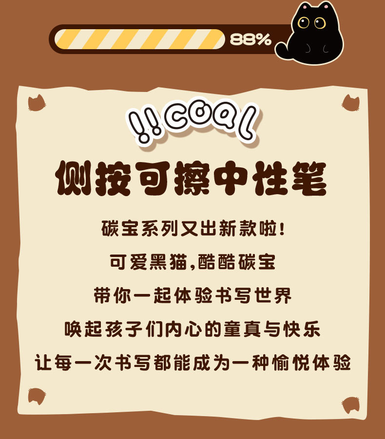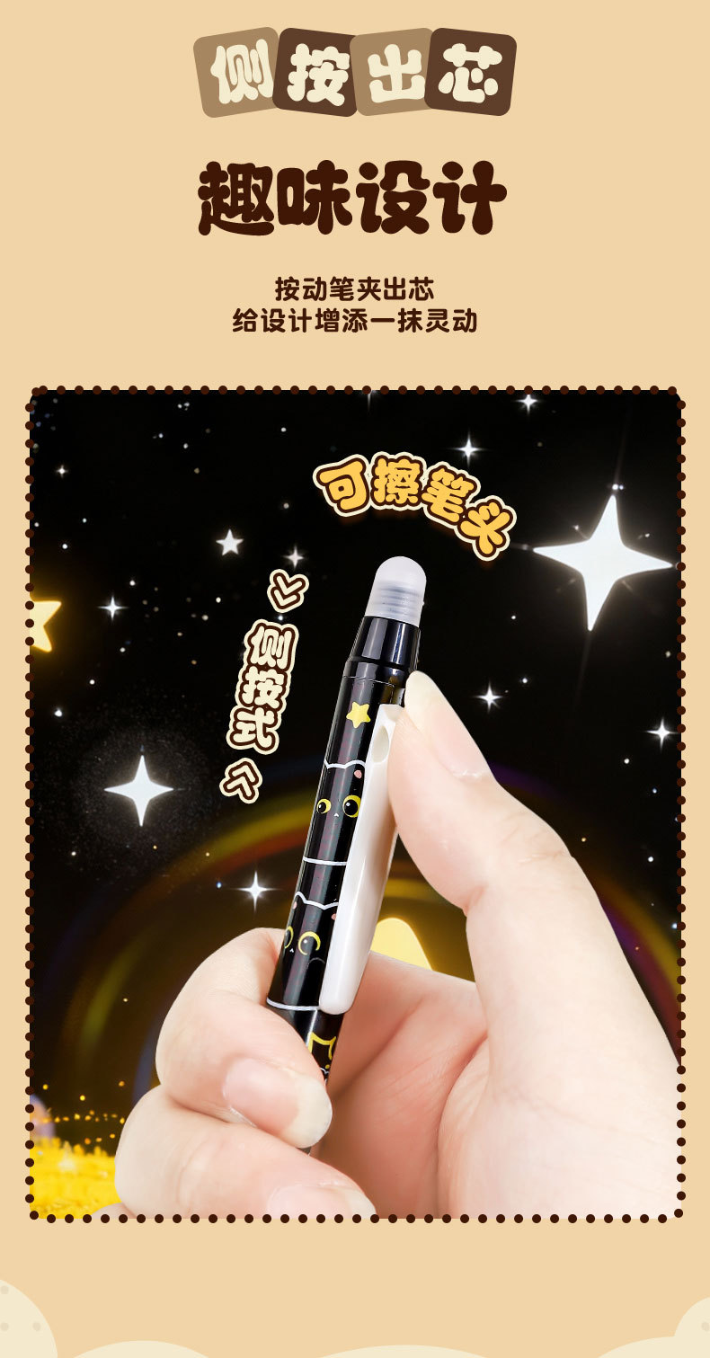 童益星 侧按可擦中性笔 酷酷碳宝 1盒6支装 混色(单位:盒)