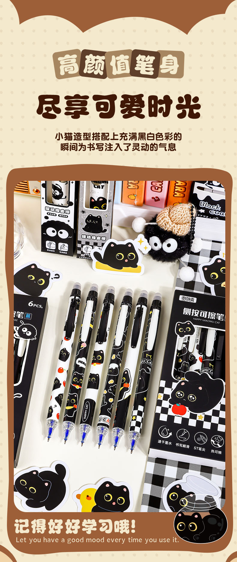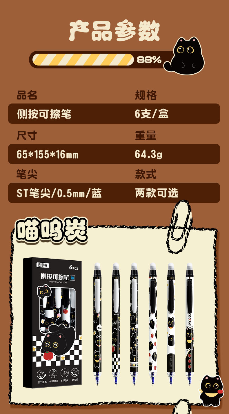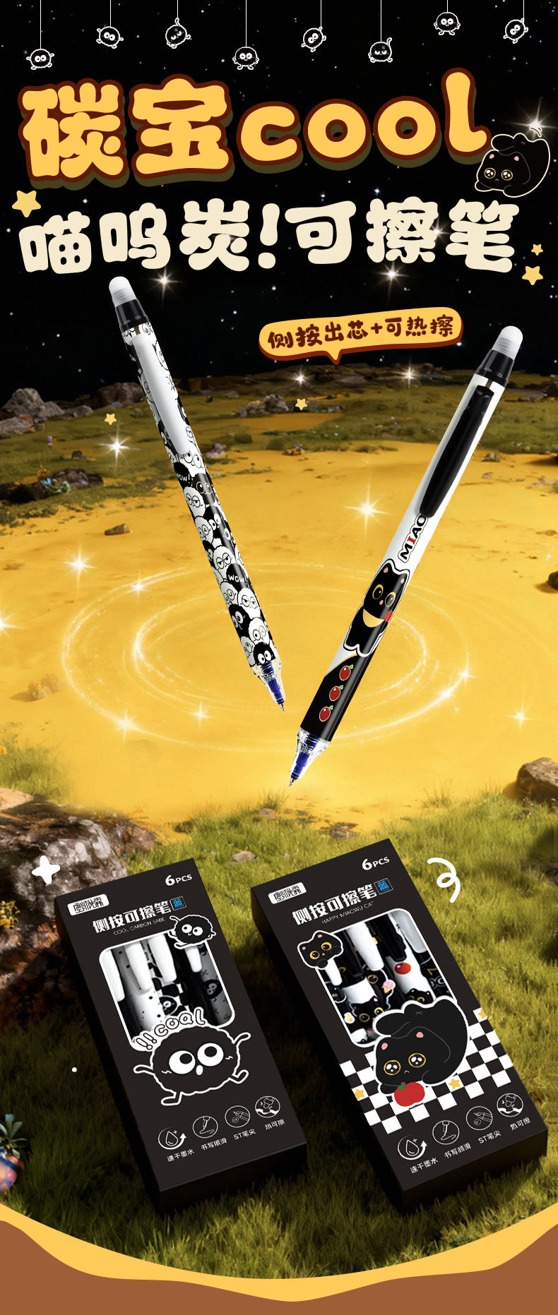 童益星 侧按可擦中性笔 酷酷碳宝 1盒6支装 混色(单位:盒)
