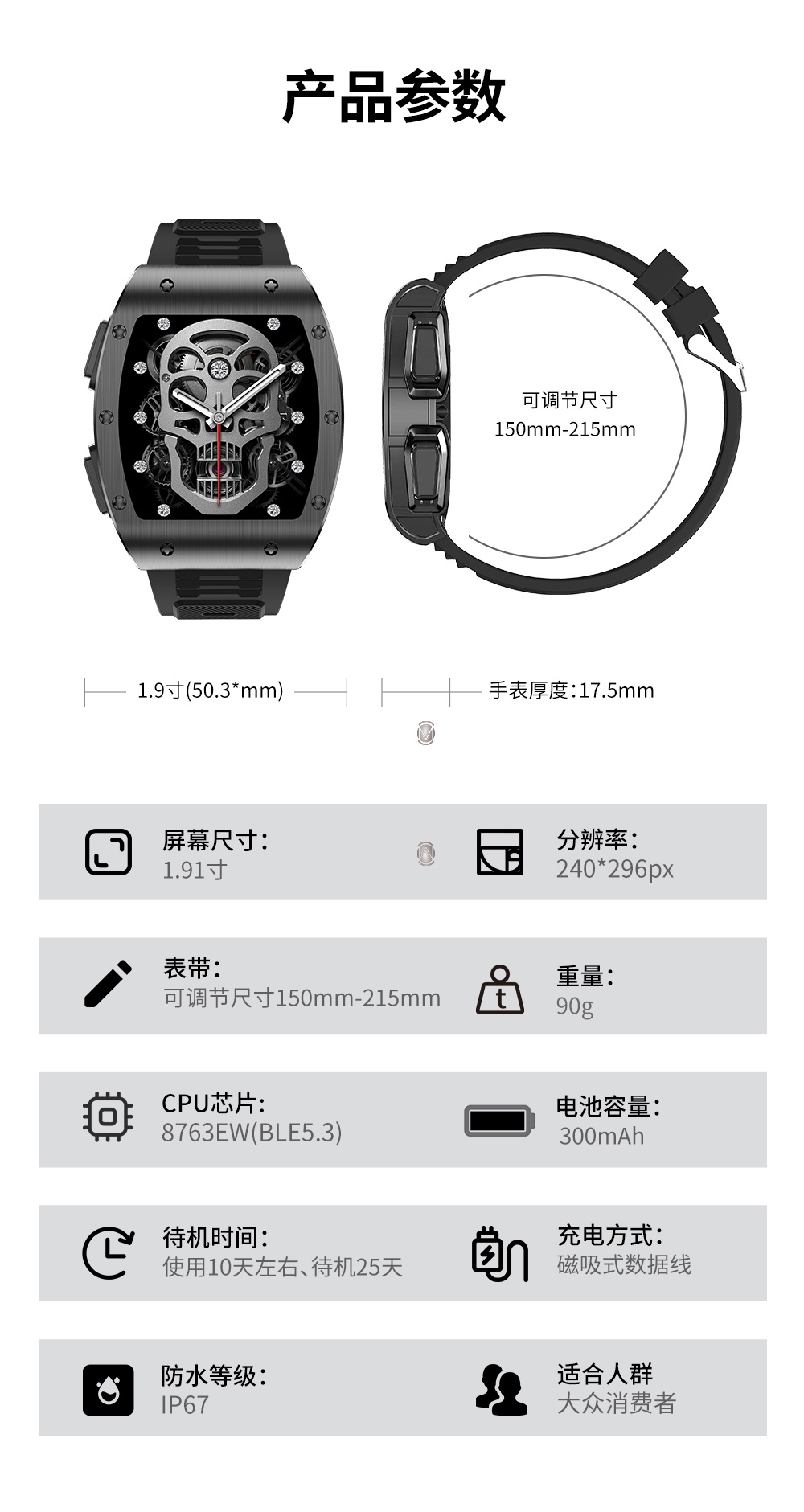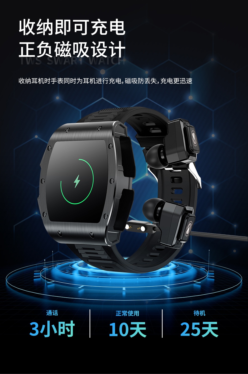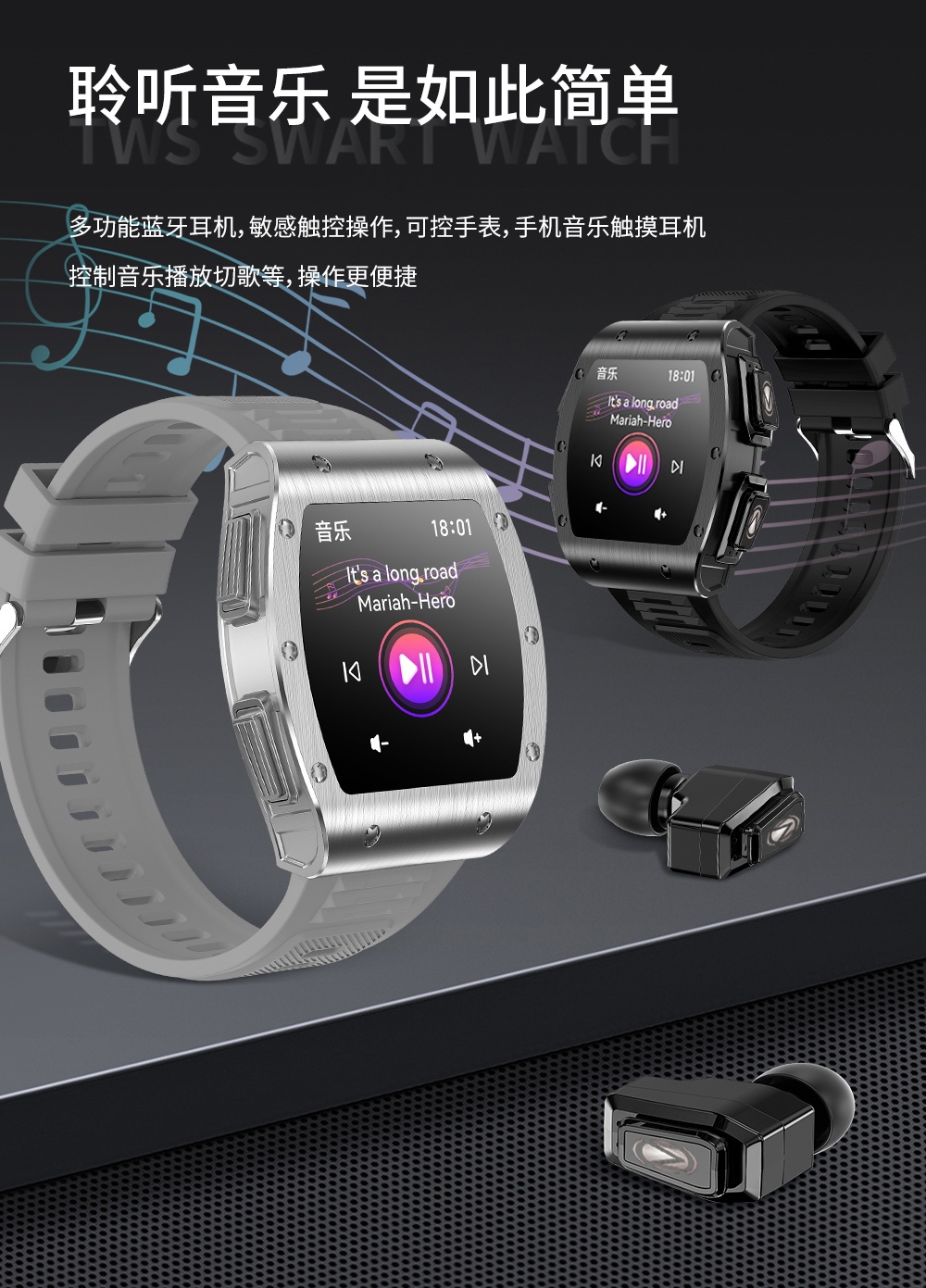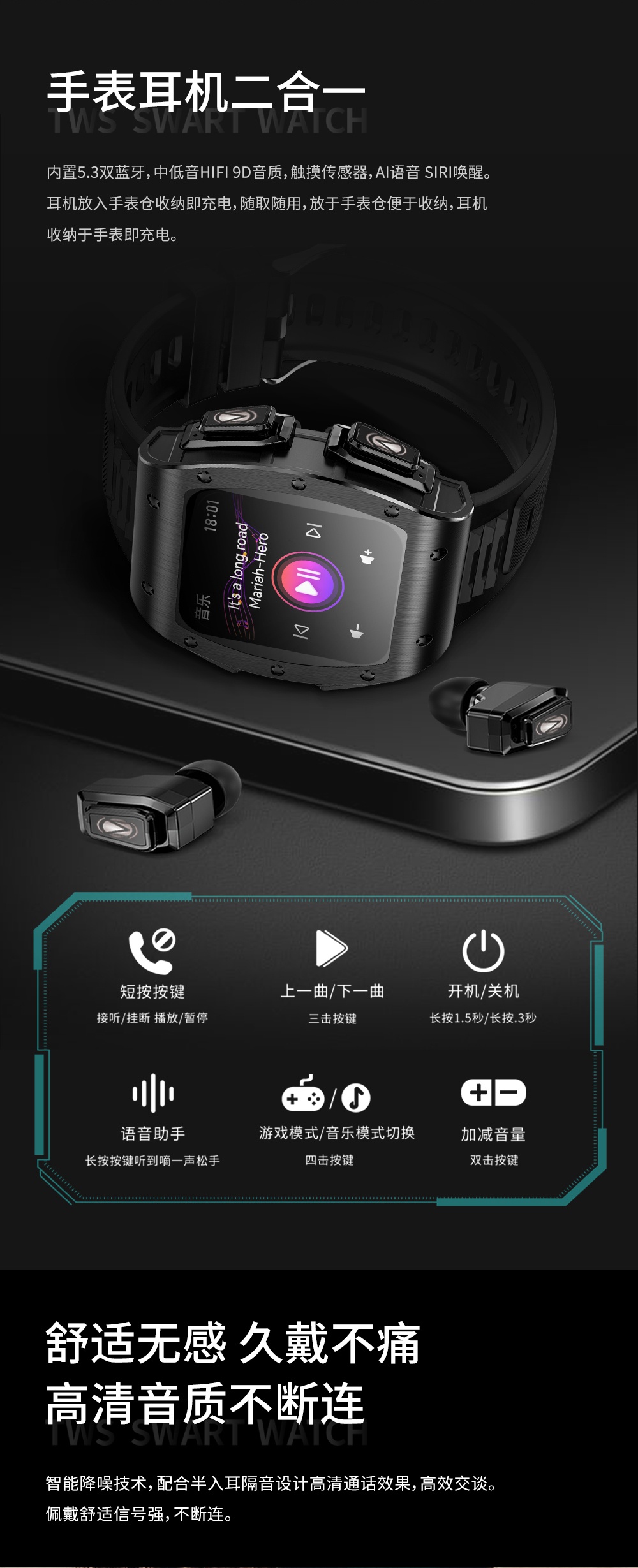 WITMIND 智手表耳机二合一 JM09 1.91寸 黑色(单位:个)