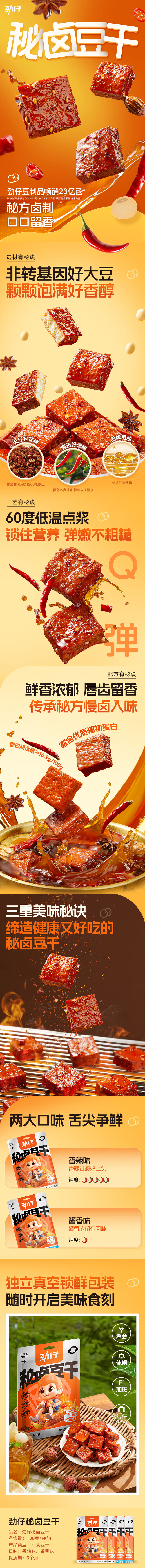 劲仔 秘卤豆干 湖南特产零食豆干 香辣味108g*2袋+酱香味108g*2袋 橙色(单位:组)