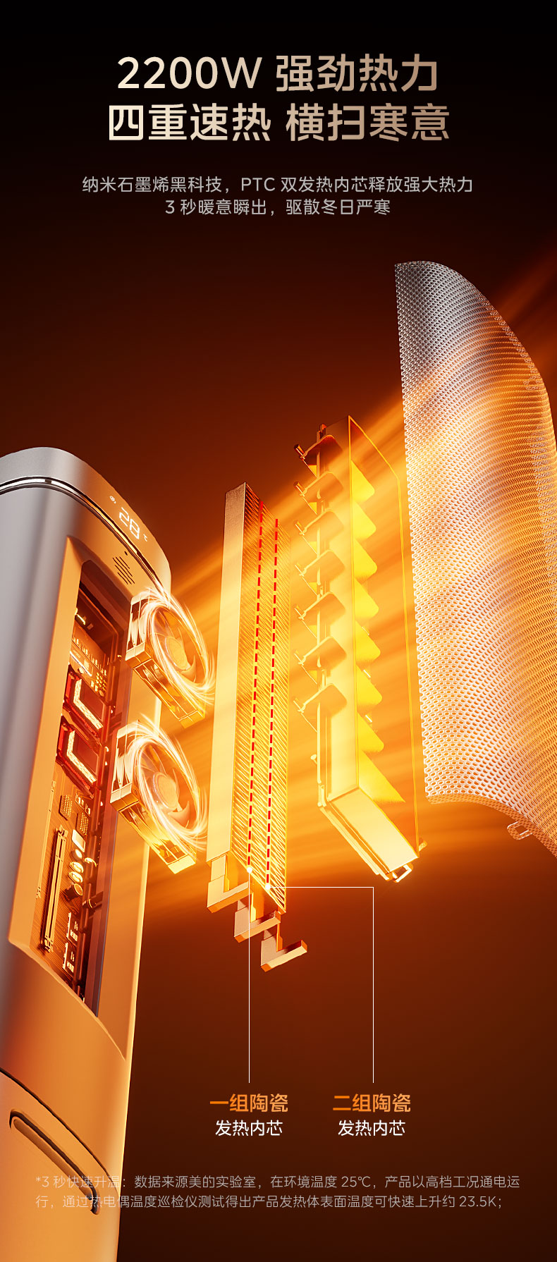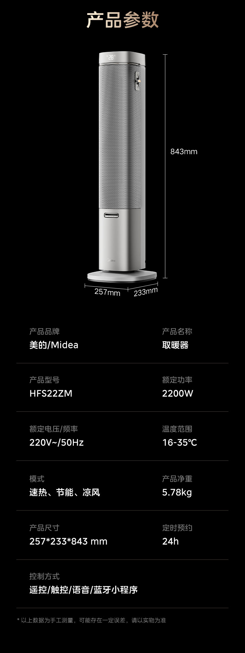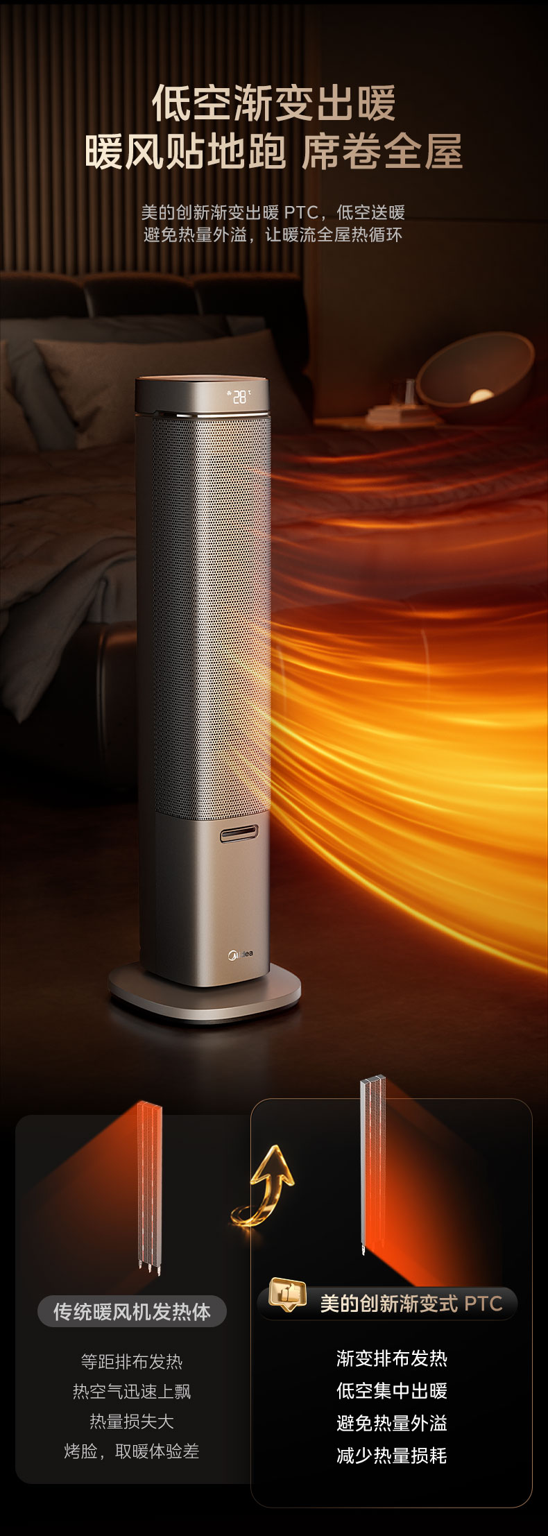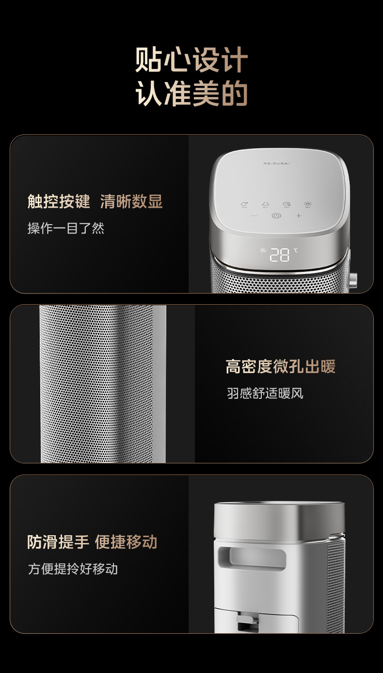 美的(Midea) 暖风机取暖器 HFS22ZM 2200W 曜石黑(单位:台)