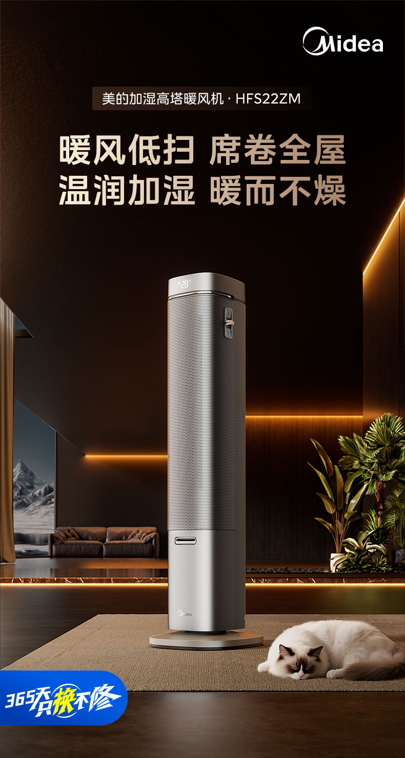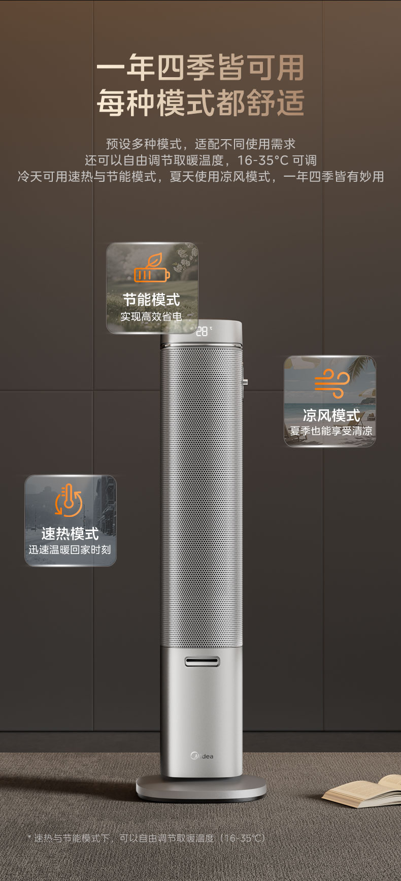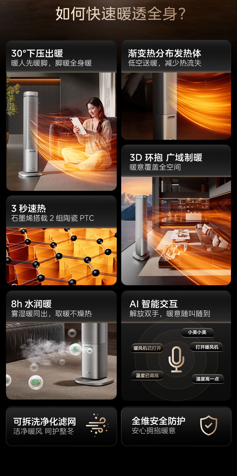 美的(Midea) 暖风机取暖器 HFS22ZM 2200W 曜石黑(单位:台)
