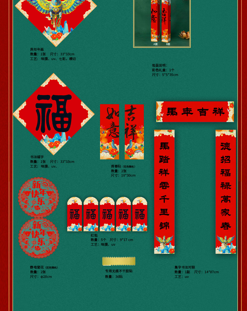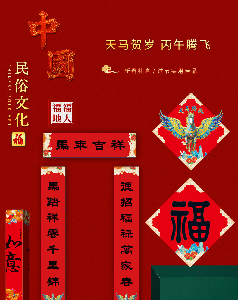 福人福地(FURENFUDI) 春节礼盒天马贺岁国潮小礼盒套装 CG.25.3508.01 14件 红色(单位:套)