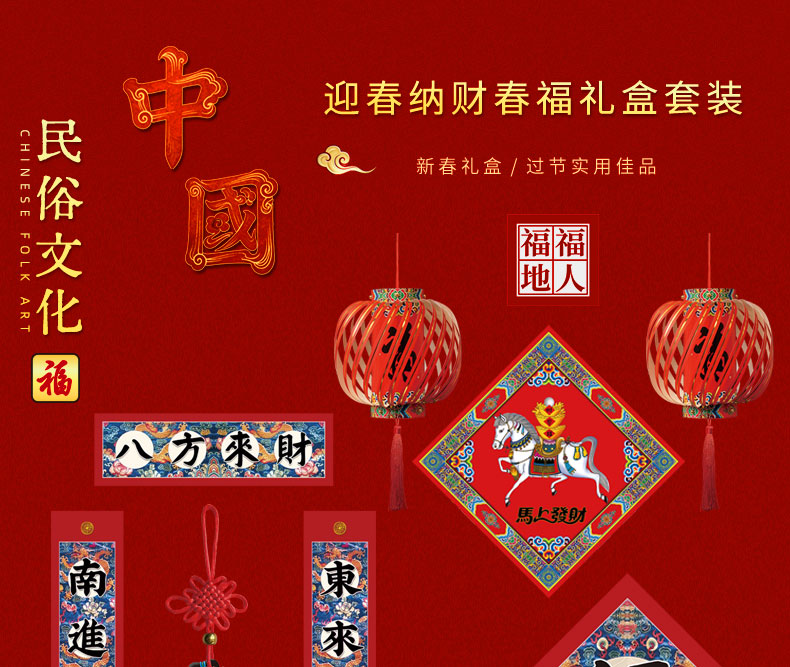 福人福地(FURENFUDI) 春节礼物马年迎春纳财春福礼盒套装 CK.25.01.01 19件 红色(单位:套)
