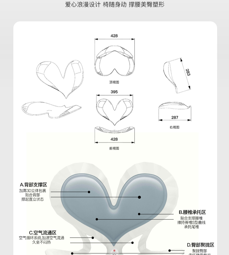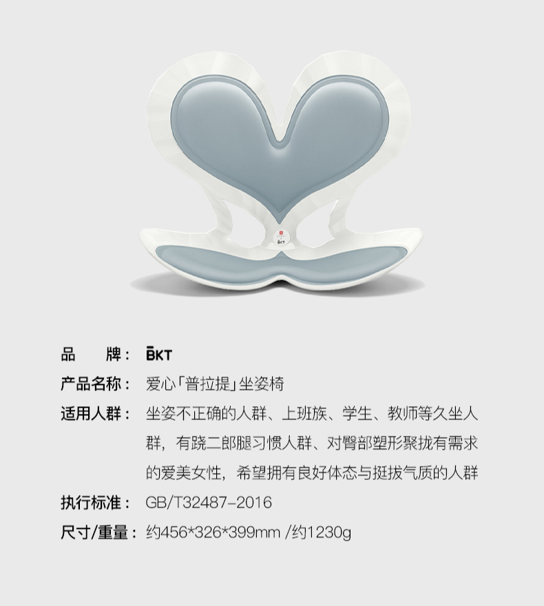 BKT 「普拉提」坐姿椅 爱心版 456*326*399mm 海雾蓝(单位:个)