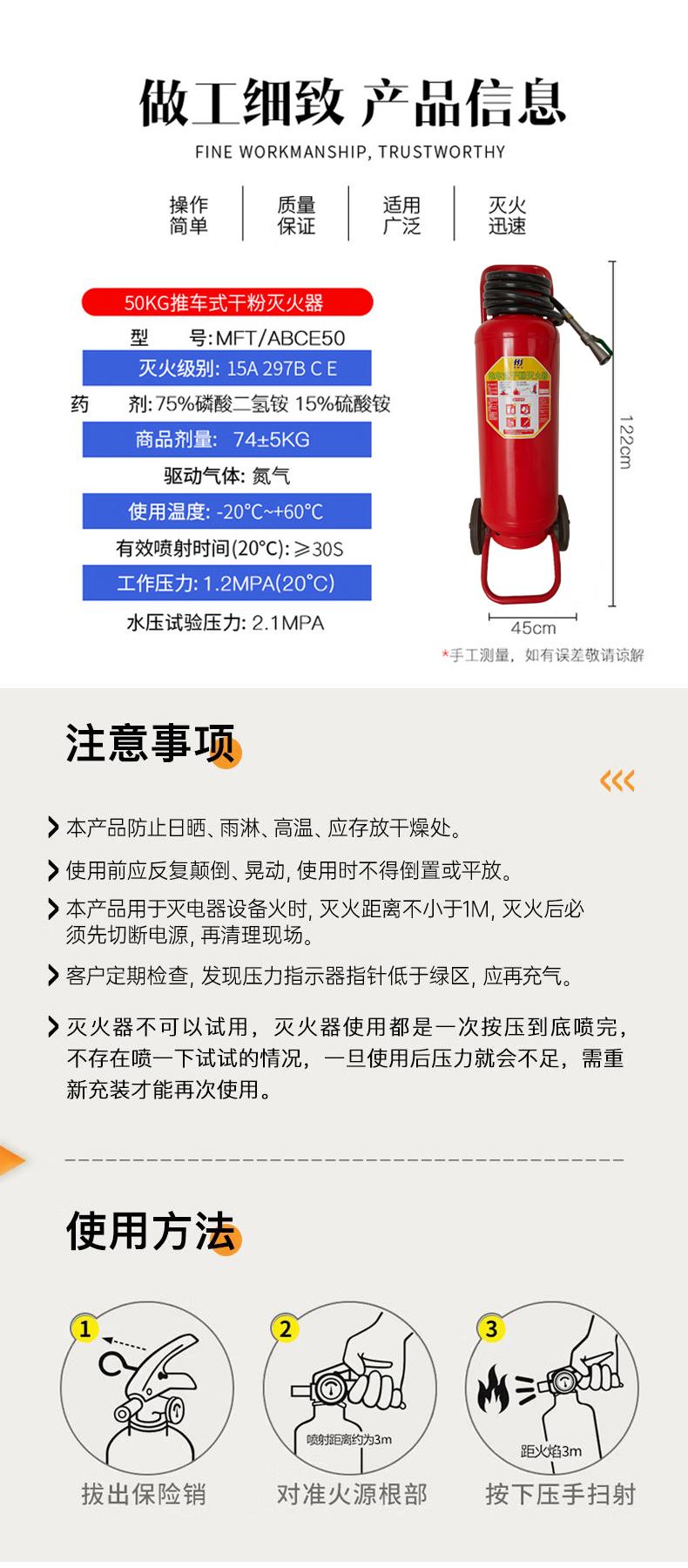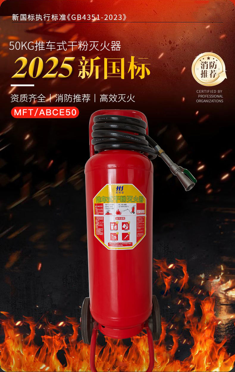 虎鲸安 推车式干粉灭火器 50公斤 MFT/ABCE50 1220*450mm 红色(单位:台)
