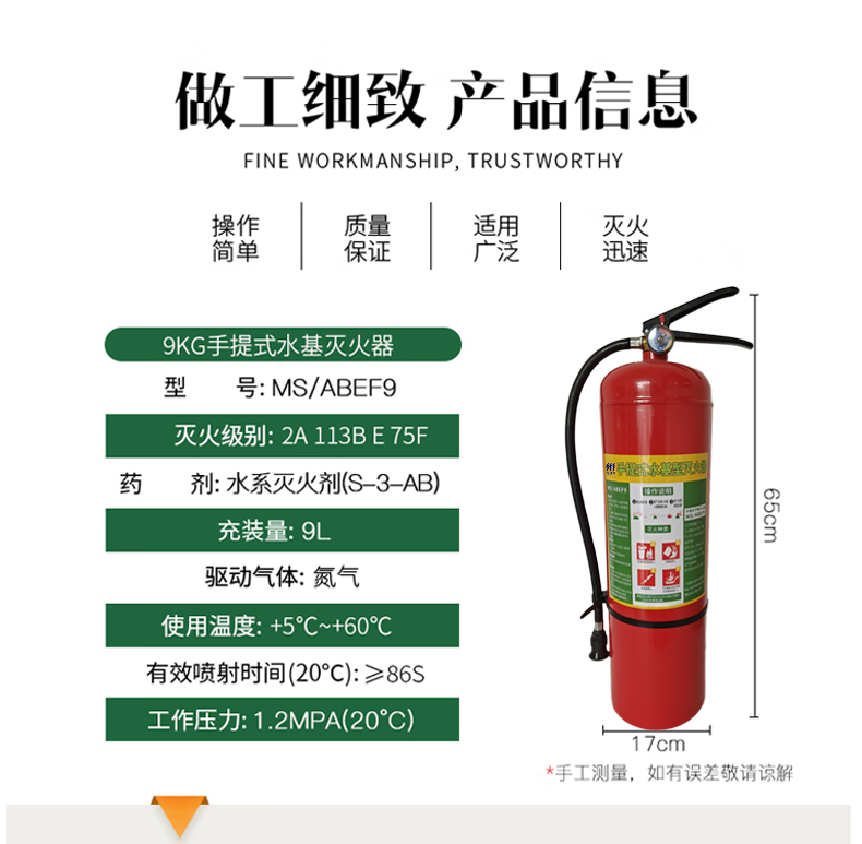 虎鲸安 手提式水基型灭火器 9升 MS/ABEF9 650*170mm 红色(单位:瓶)