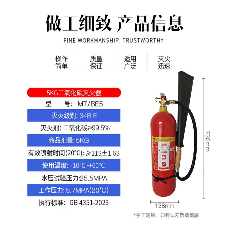 虎鲸安 手提式二氧化碳灭火器 5公斤 MT/BE5 735*138mm 红色(单位:瓶)