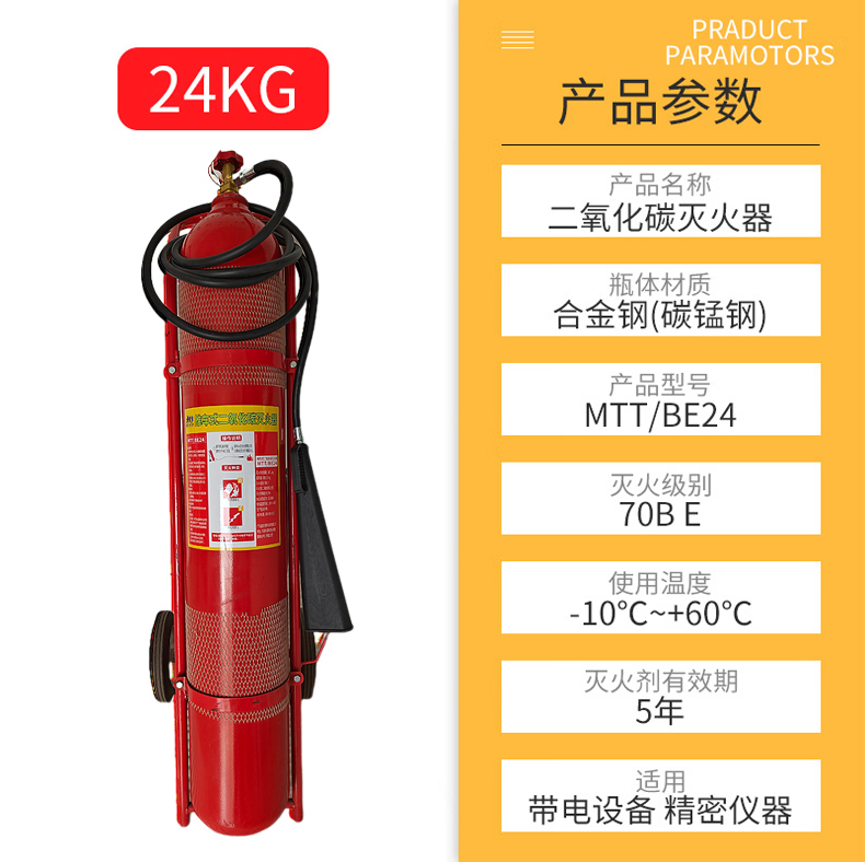 虎鲸安 推车式二氧化碳灭火器 24KG MTT/BE24 430*1320mm 红色(单位:台)
