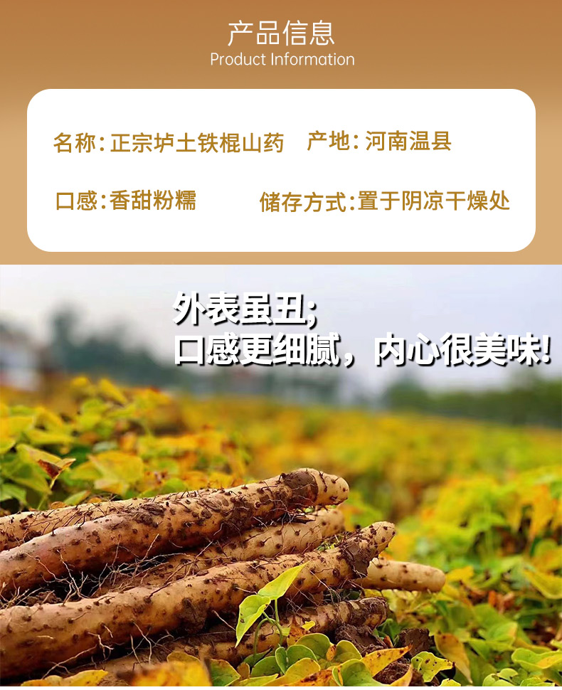 食欲跳动 软糯可口 温县垆土铁棍山药 4.5斤40型(长度35cm) 黄色(单位:箱)