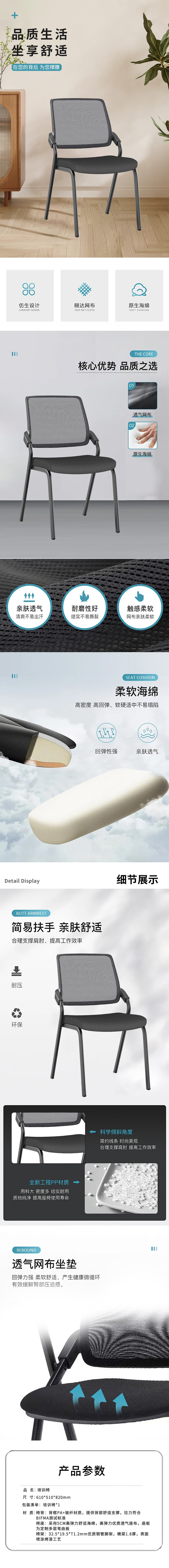 企诺 培训椅会议椅办公椅黑色洽谈椅 QE003 610*510*820mm 黑色(单位:张)