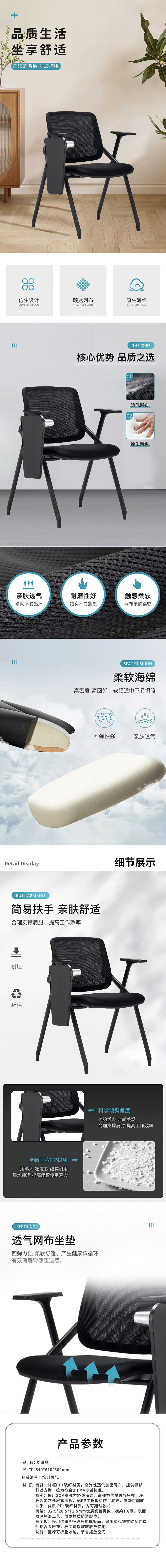 企诺 培训椅会议椅办公椅黑色洽谈椅折叠椅 QE007 540*610*800mm 黑色(单位:张)