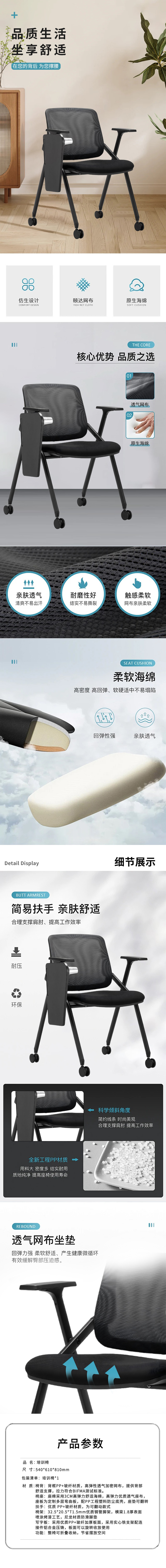 企诺 培训椅会议椅办公椅黑色洽谈椅折叠椅带轮 QE009 540*610*810mm 黑色(单位:张)